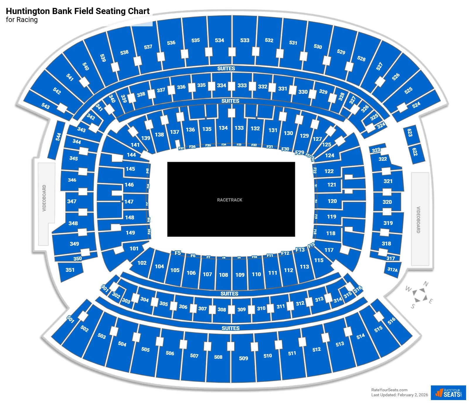 Huntington Bank Field hosts a number of different events, including Browns games, concerts, soccer matches and racing games. These events each have a different seating chart. Select one of the maps to explore an interactive seating chart of Huntington Bank Field.