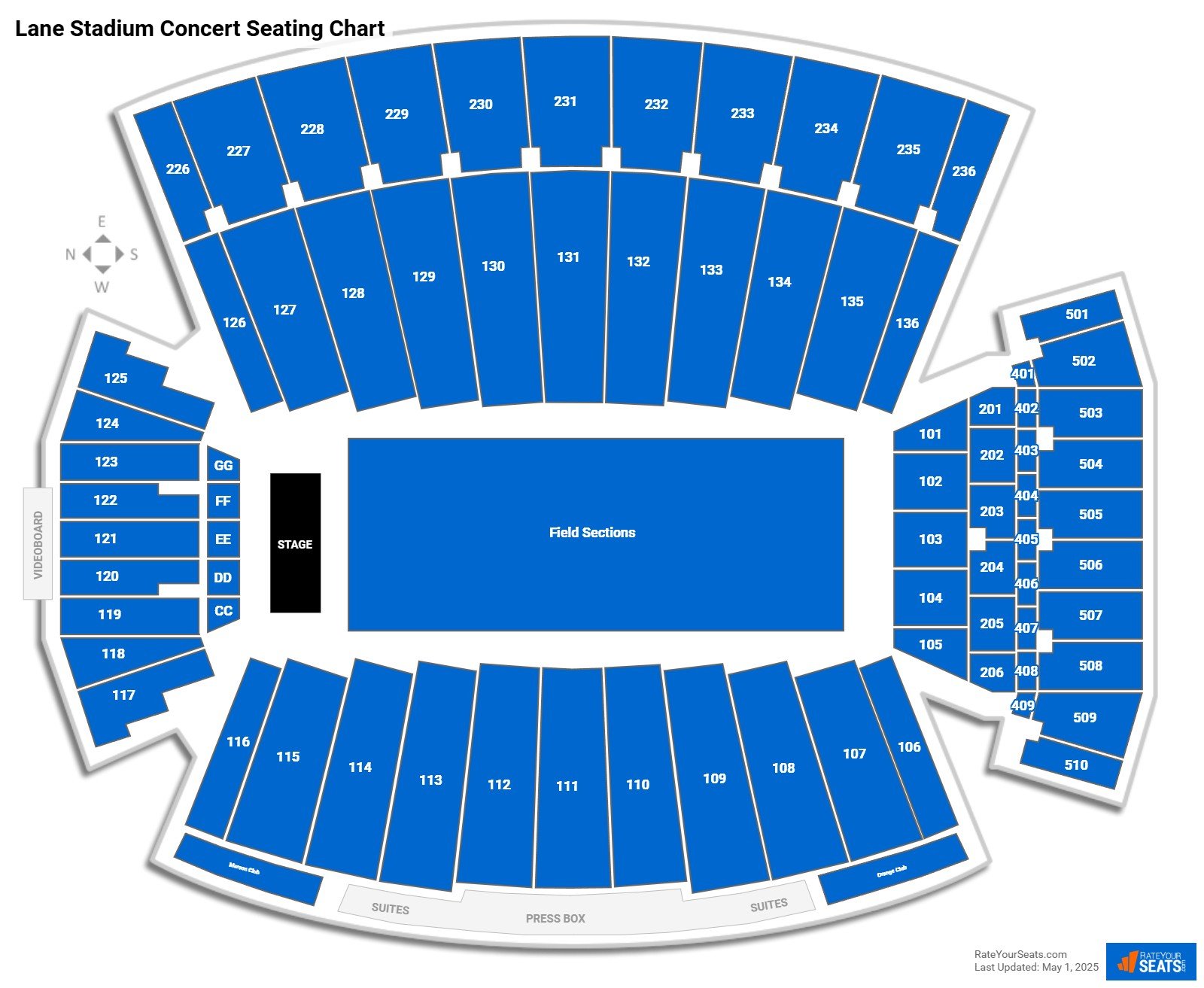 Lane Stadium hosts a number of different events, including Virginia Tech Football games and concerts. These events each have a different seating chart. Select one of the maps to explore an interactive seating chart of Lane Stadium.