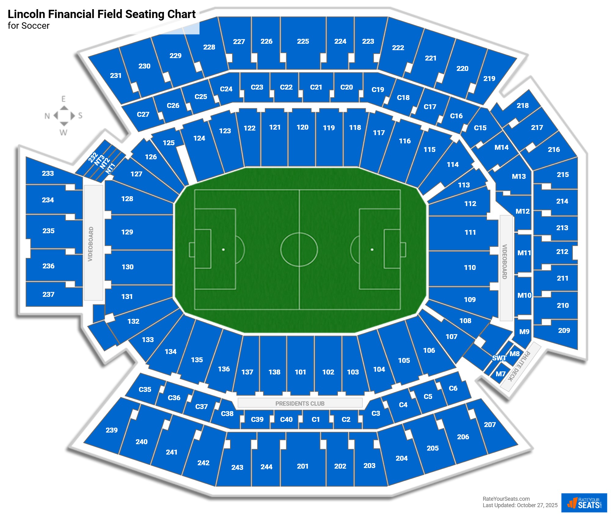 Lincoln Financial Field hosts a number of different events, including Temple Football games, concerts and soccer matches. These events each have a different seating chart. Select one of the maps to explore an interactive seating chart of Lincoln Financial Field.