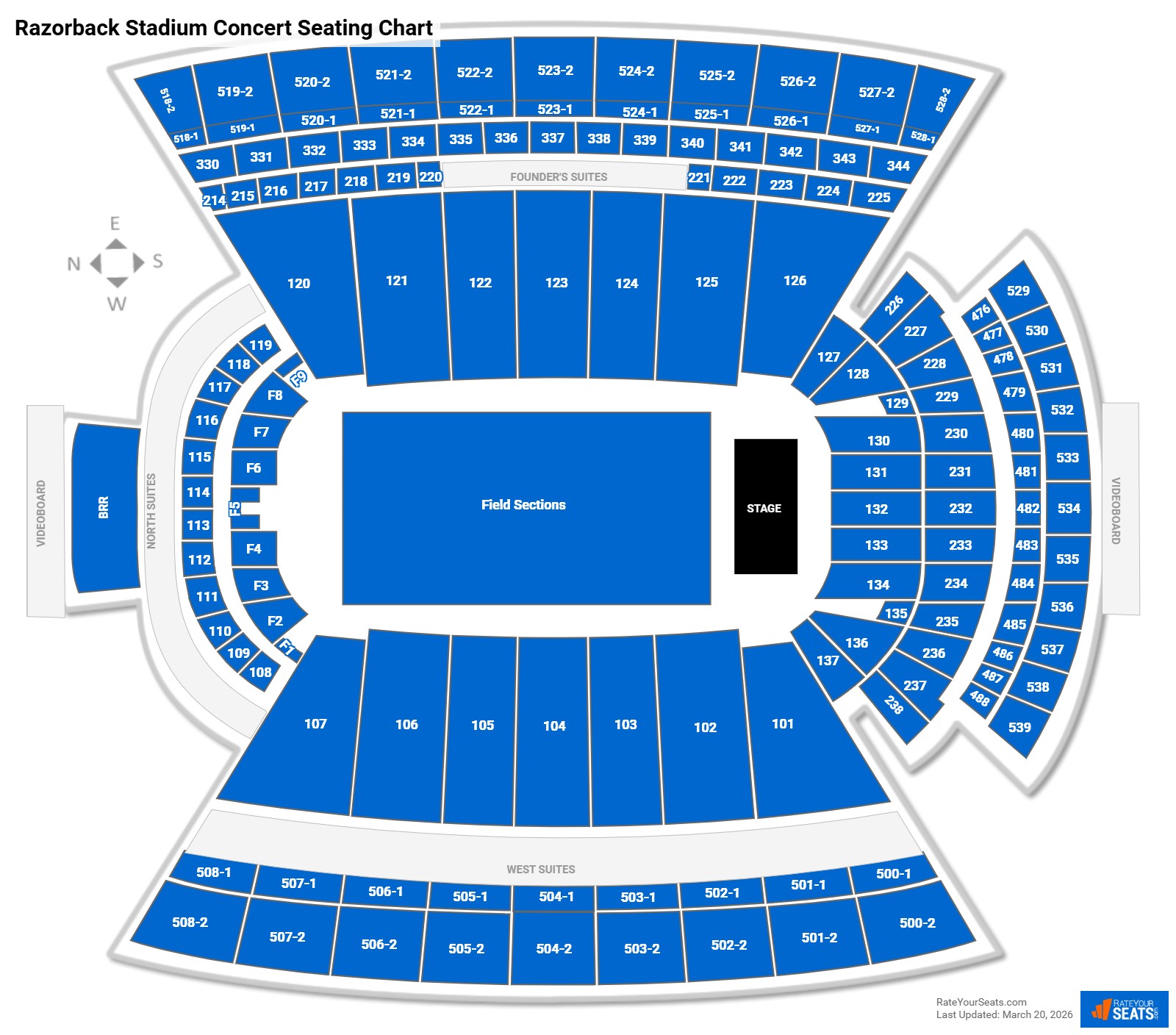 Seating Charts for Razorback Stadium