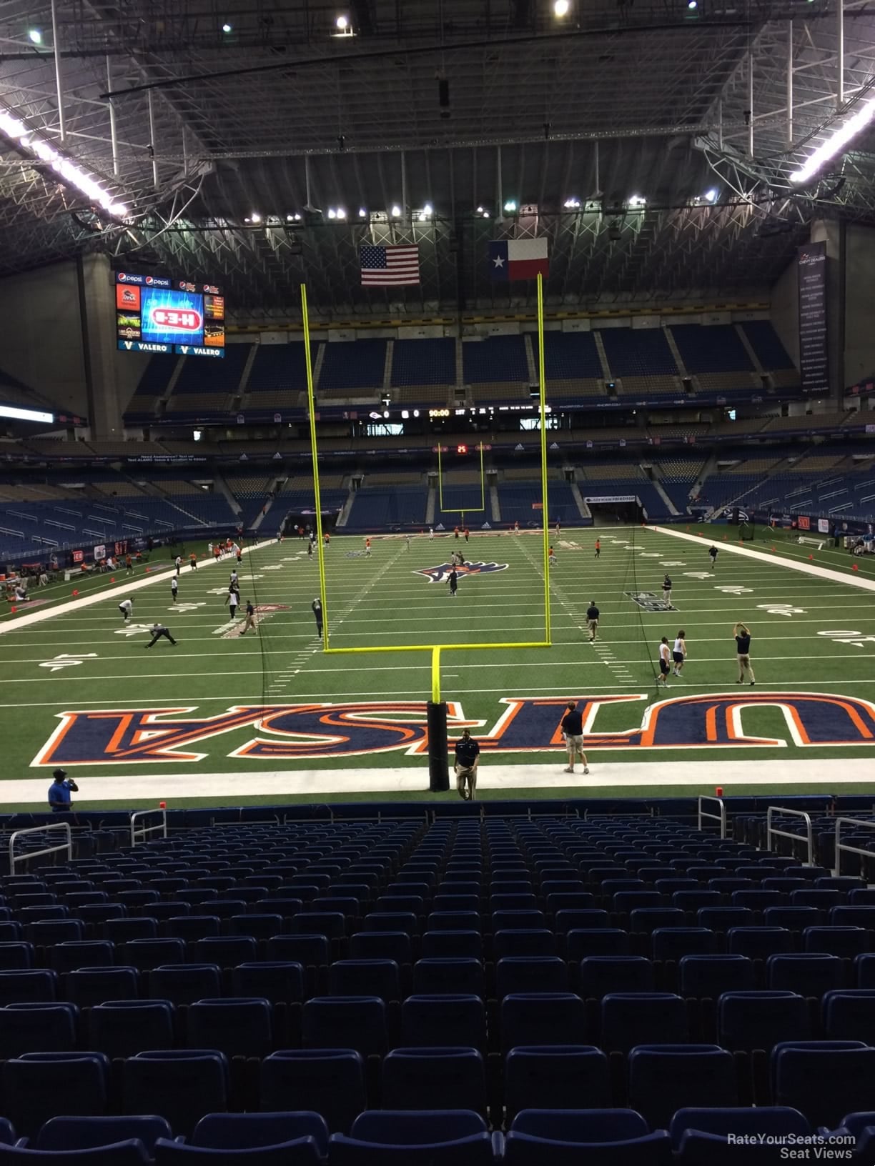 -Plaza Endzone seating rows are labeled AA-DD and 1-35. For UTSA games, Sections 122-125 are reserved for UTSA students.
