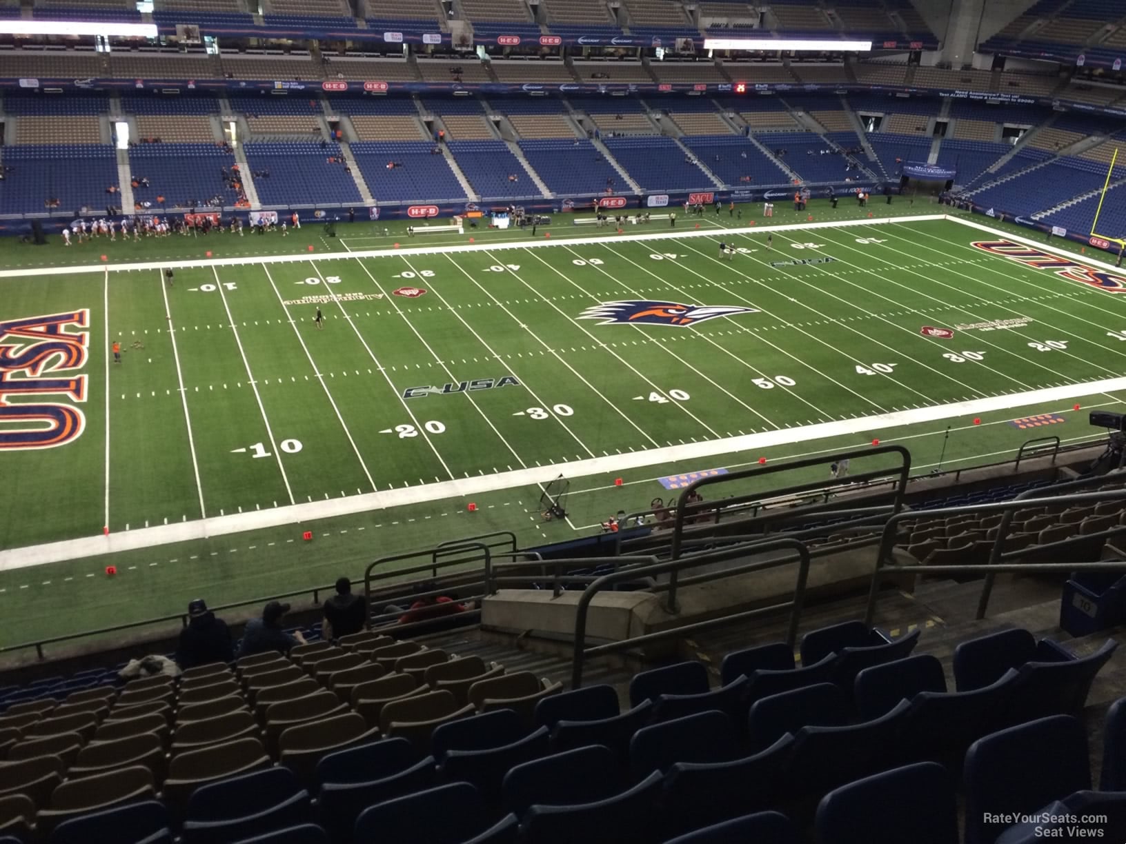 -There are 28 rows in each Upper Level Sideline section and up to 25 seats in each row. The popular Skyline Club offers views of downtown San Antonio and is located beyond the seating on the North Side of the Upper Level.