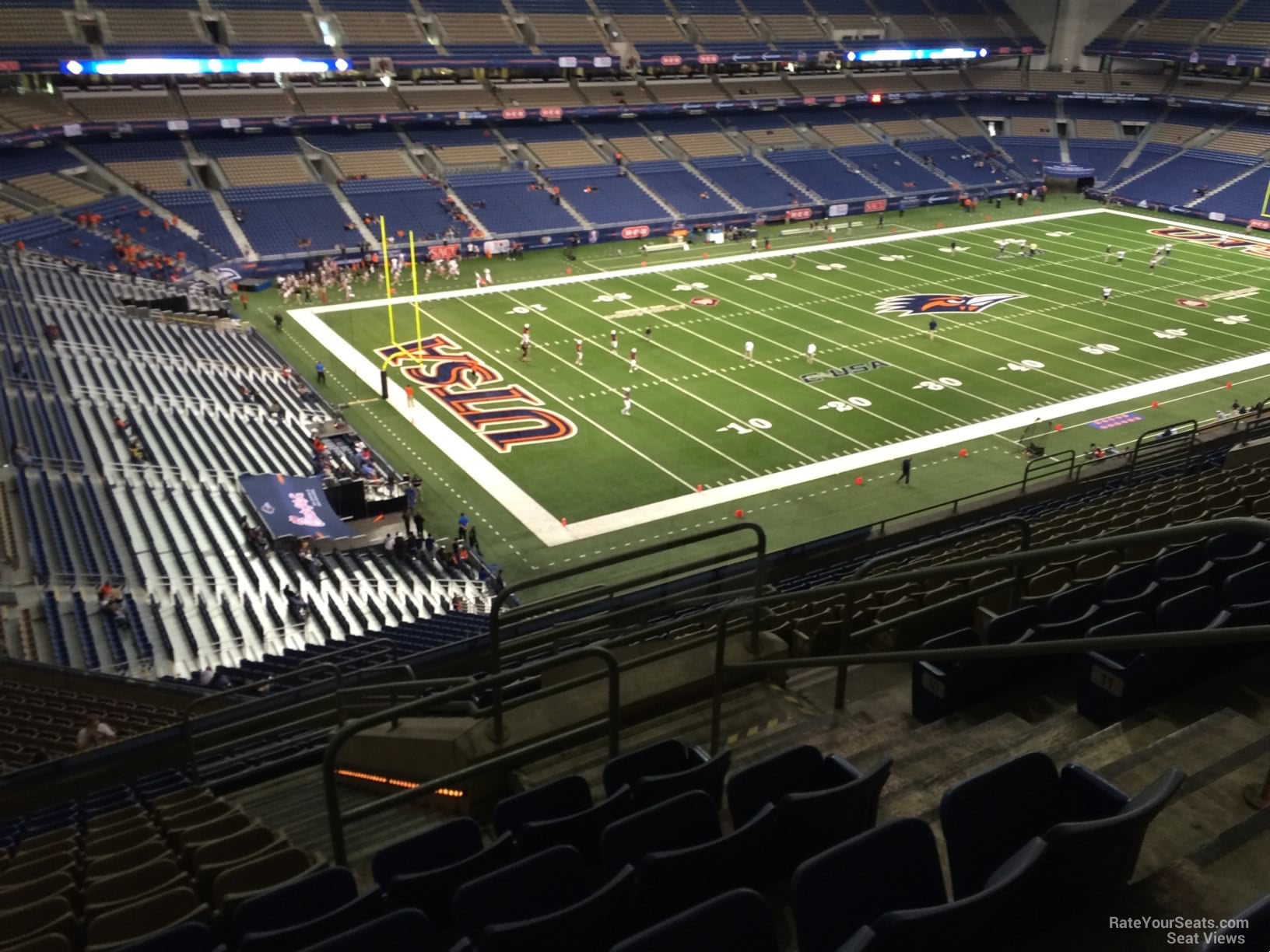 -There are 28 rows in each Upper Level Sideline section and up to 25 seats in each row. The popular Skyline Club offers views of downtown San Antonio and is located beyond the seating on the North Side of the Upper Level.