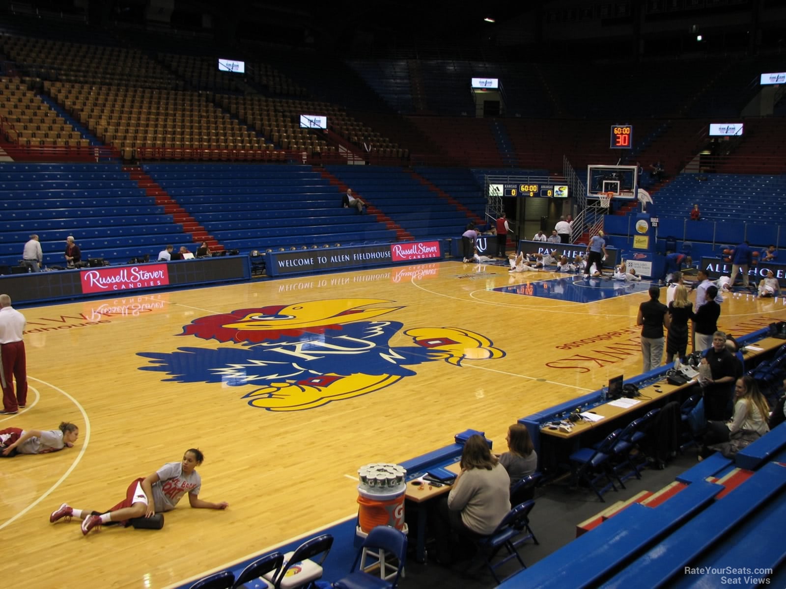 -The best seats at Allen Fieldhouse are sections located along the sidelines in the lower level. This includes sections U-Q on the players side and E-J on the opposite side. Each of these sections has an unobstructed view of the court from within 11 rows. Section T is directly behind the KU bench Section R is behind the visitor bench