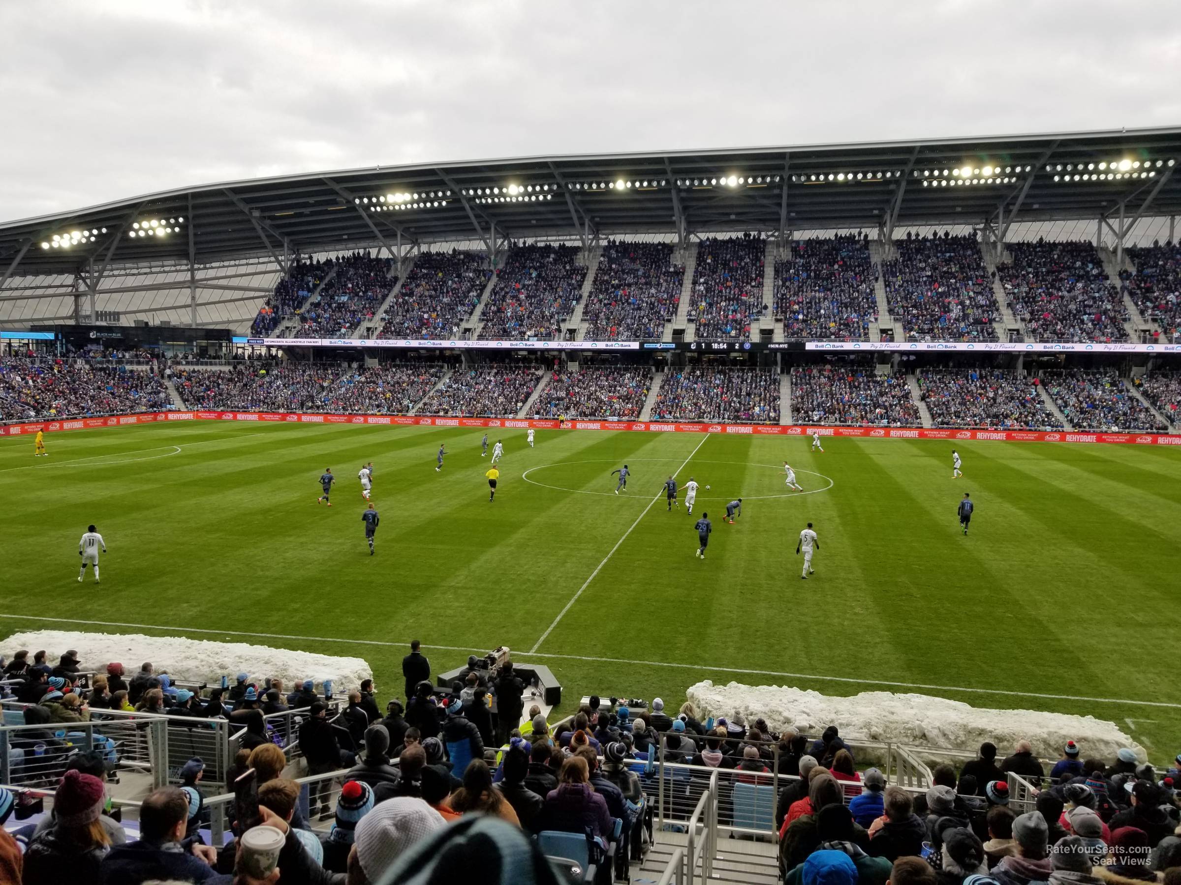 -The Lower Bowl Sideline sections at Allianz Field have some of the best sight lines to watch a Minnesota United soccer match. Each section has at least 11 rows of seating, but all sections on the east side of the soccer field will have 18 rows of seating. If you are sitting on the west side of the stadium in sections 27-36, we recommend looking for seating in the higher rows, since the Field Club sections will be right in front of sections 29-35. For the best midfield views look for tickets in sections 13 or 32.