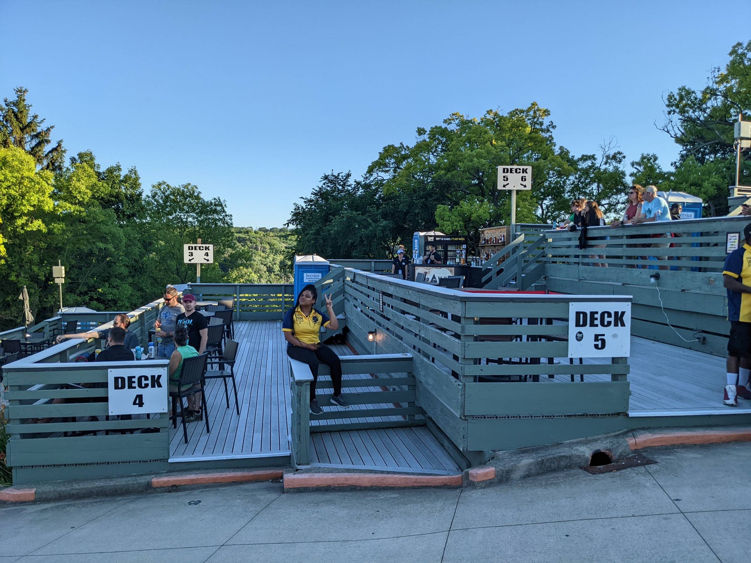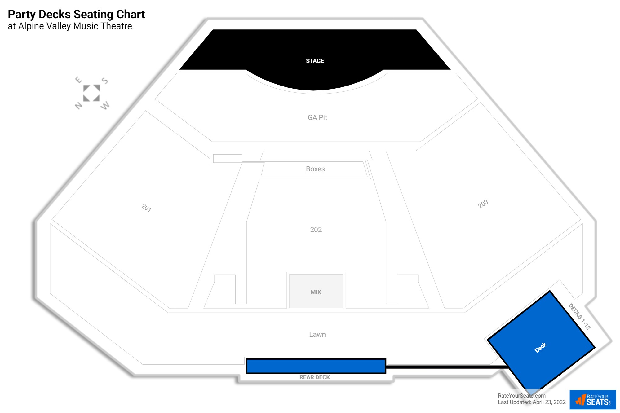 The Party Decks at Alpine Valley are located just beyond the reserved seating areas on the far right when looking at the stage. These private are areas open air patio-style. Deck 1 will be at the front of the hill with each following deck getting slightly further and higher before ending at 12.