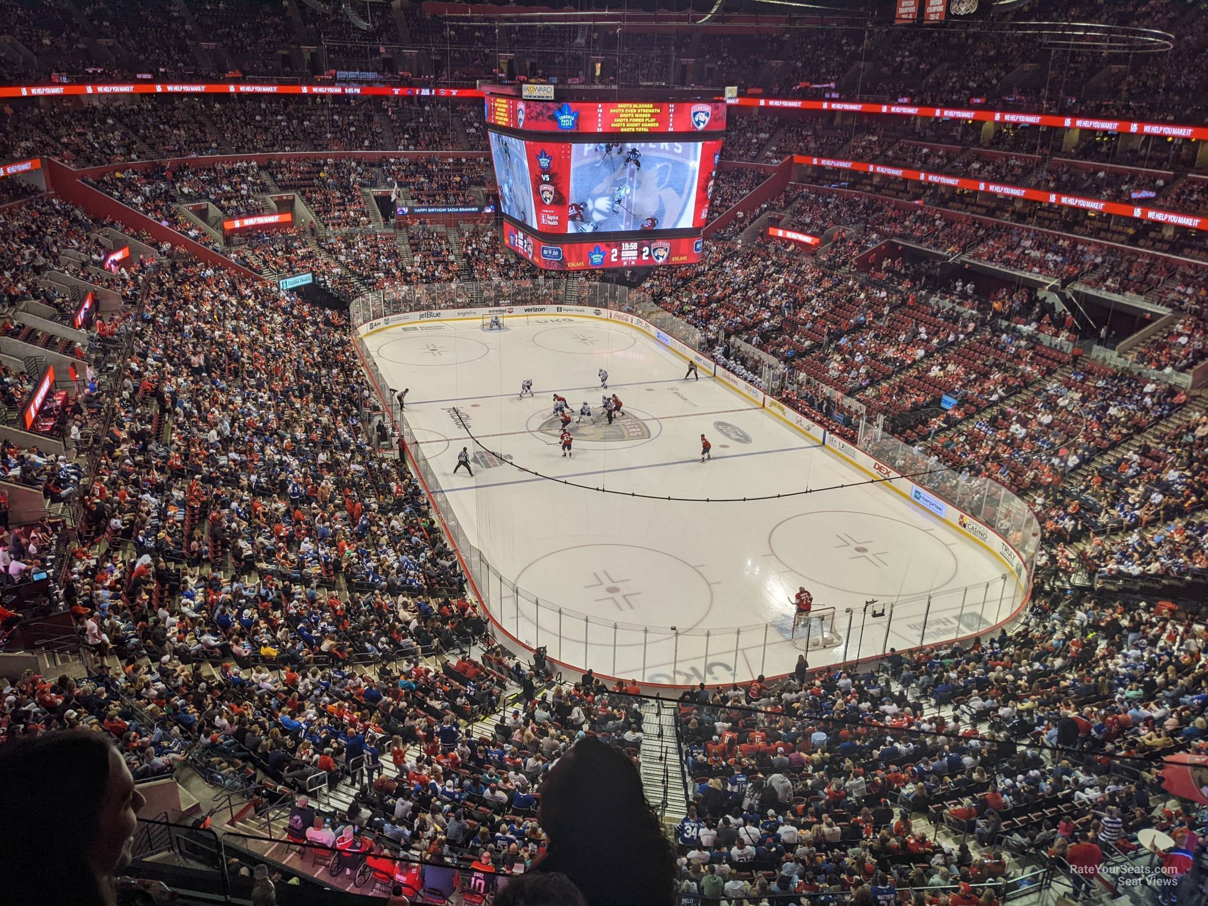 -From behind the net on the upper seating tier, fans will have an aerial perspective of the game best suited for the hockey enthusiast. Viewing the action at the opposite end will be difficult, and with a non-traditional angle from behind the goalie, these seats are not recommended for the casual fan. Panthers supporters will want to be in Sections 325-327 as these seats are closer to the net where the Panthers shoot twice. Sections in this location have between 11 and 16 numbered rows of seats in each.