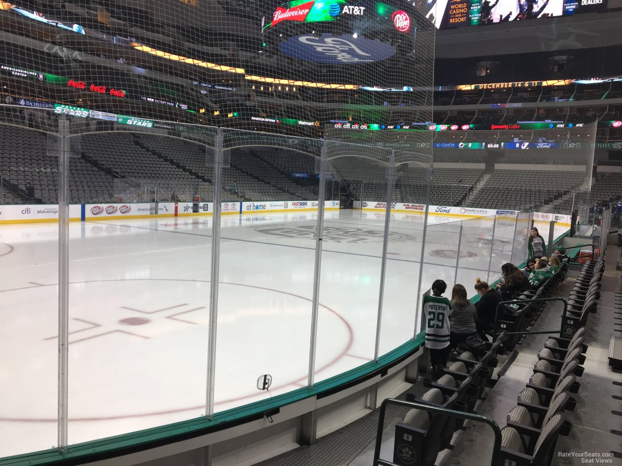 -Glass seats at American Airlines Center are all seats in Row A of the Plaza Level. Many fans would consider these the best seats for a Dallas Stars game. Being within arms reach of the action gives fans an appreciation for the size and speed of the players on the ice. In addition to having one of the most exciting seats for watching a hockey game at American Airlines Center, fans with a ticket on the glass will have access to the Tequila Patron Lounge which offers all-inclusive food and beverage. Where to Sit Sections 111-114 are on the end of the ice the Stars will shoot twice. Sitting in Glass Seats in these sections would literally be a front row seat to many Stars scoring opportunities. Sitting at the ends also has the least amount of obstructed views from the glass. Sections 106 and 107 will be near center ice. However, due to the angles along the glass some areas of the ice in the corners may be tough to see.