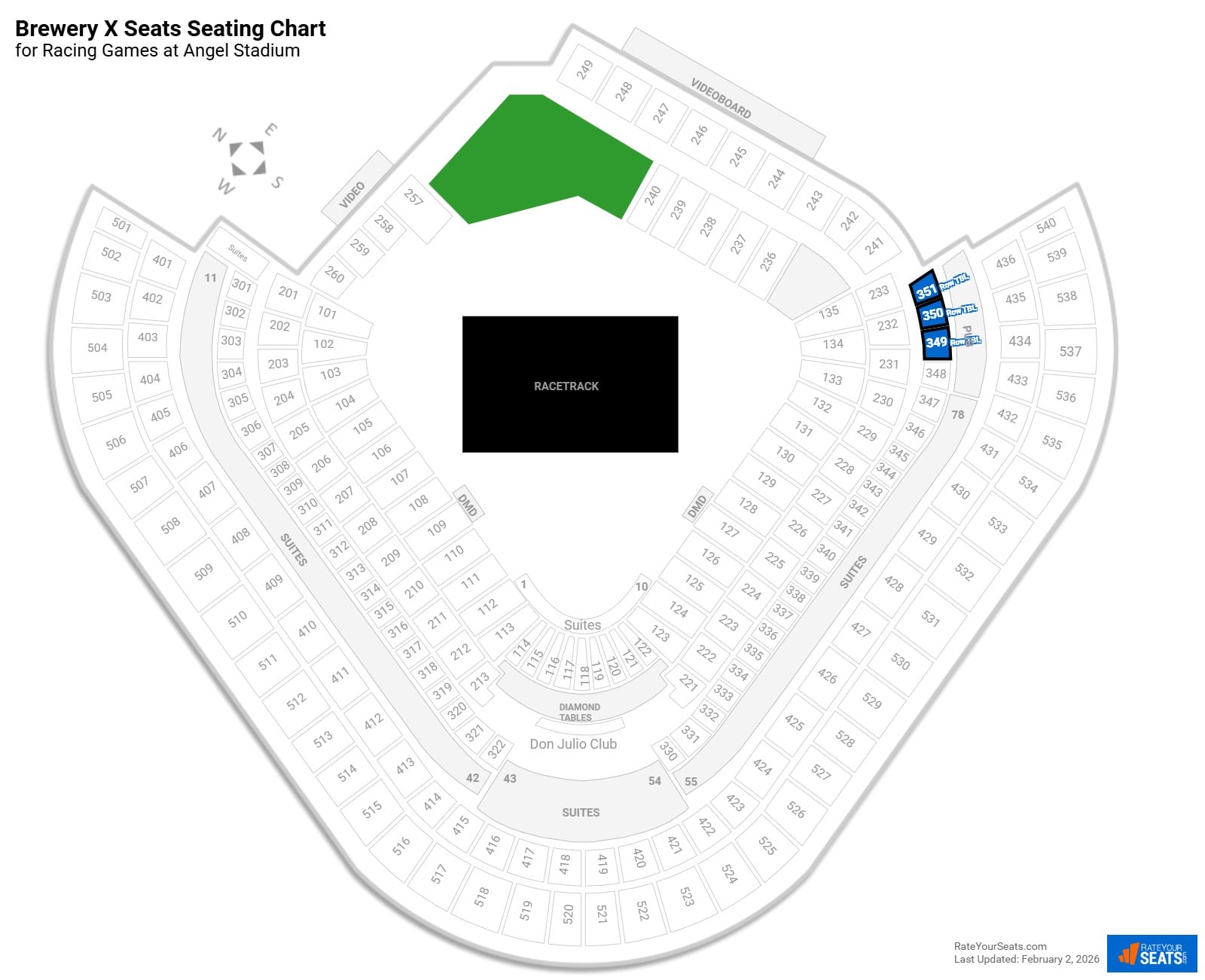 Sections 349–351: Brewery X spans across these sections on the 300 level.