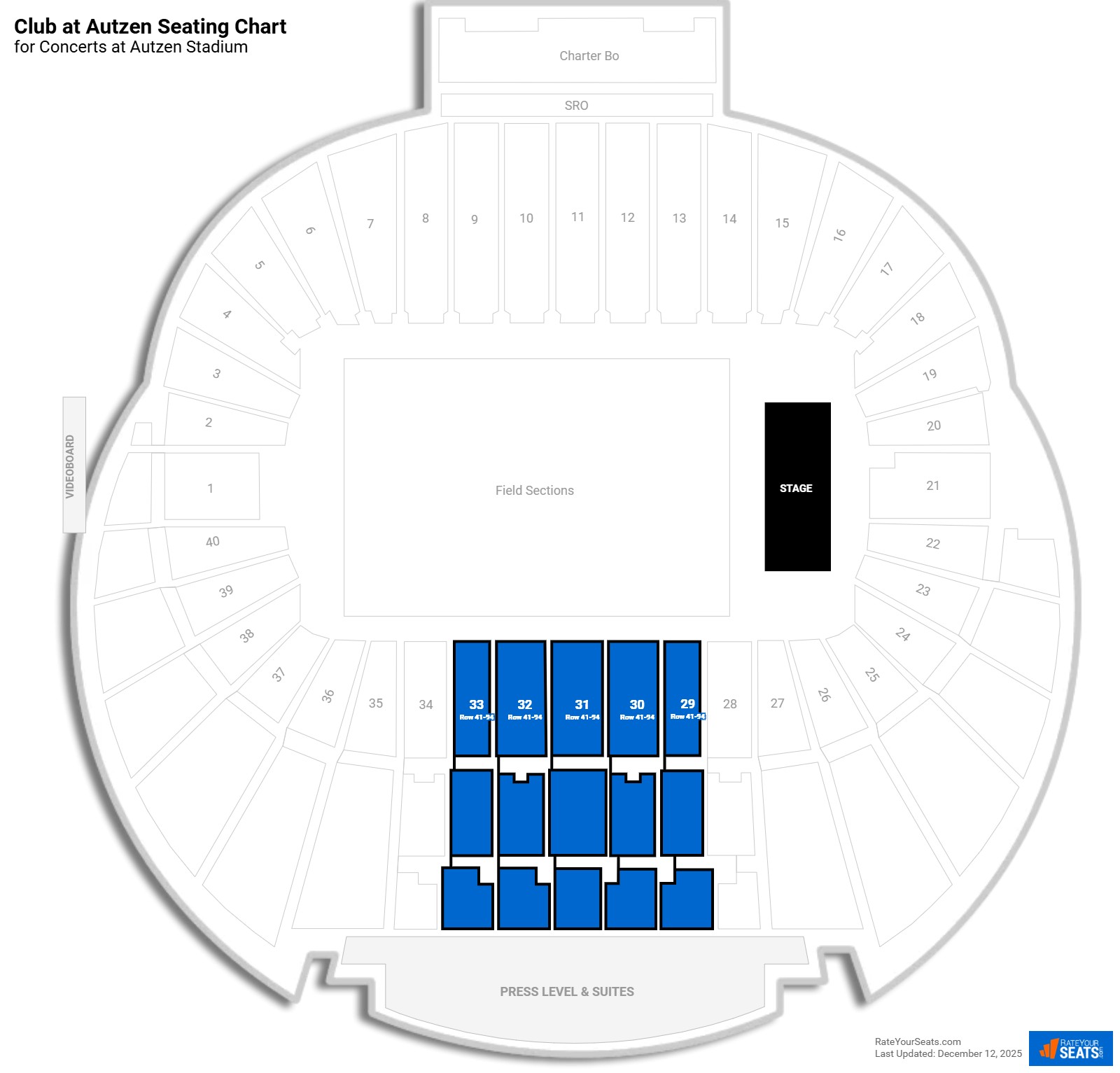 The Club at Autzen is an exclusive seating area located within select rows of sections 29-33 along the South side of the stadium. These seats are perfectly situated along the sideline at the best height for seeing the entire field.