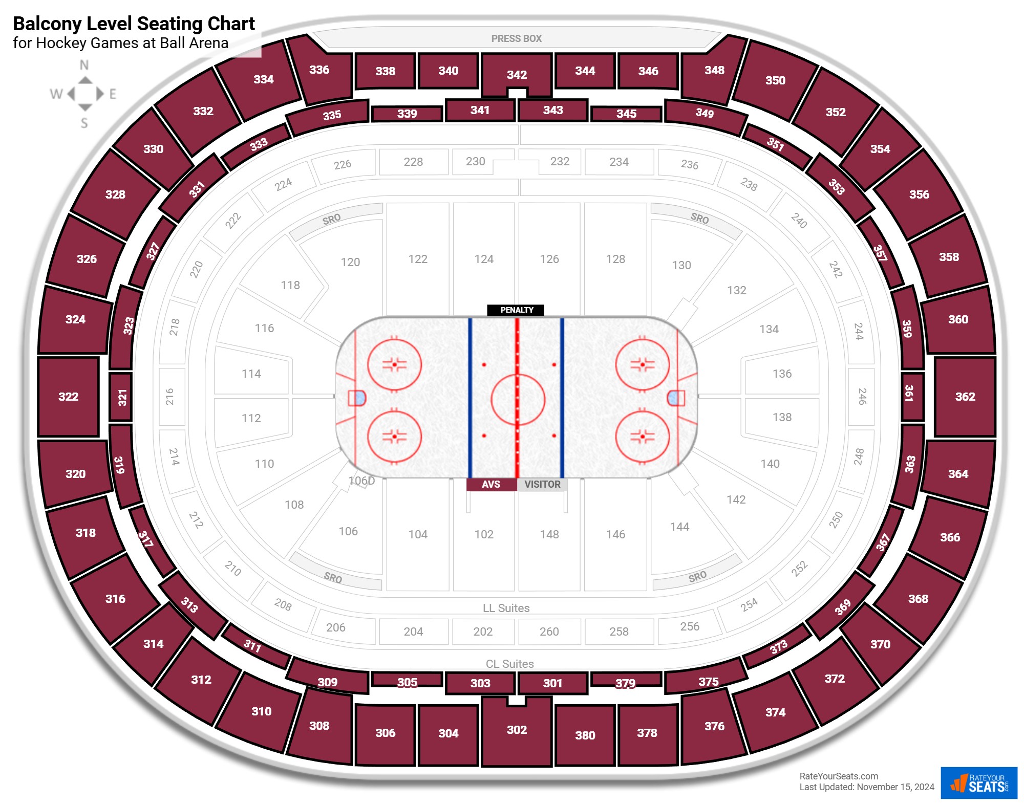 The Balcony Level at Ball Arena is separated into the Upper Balcony and Lower Balcony.