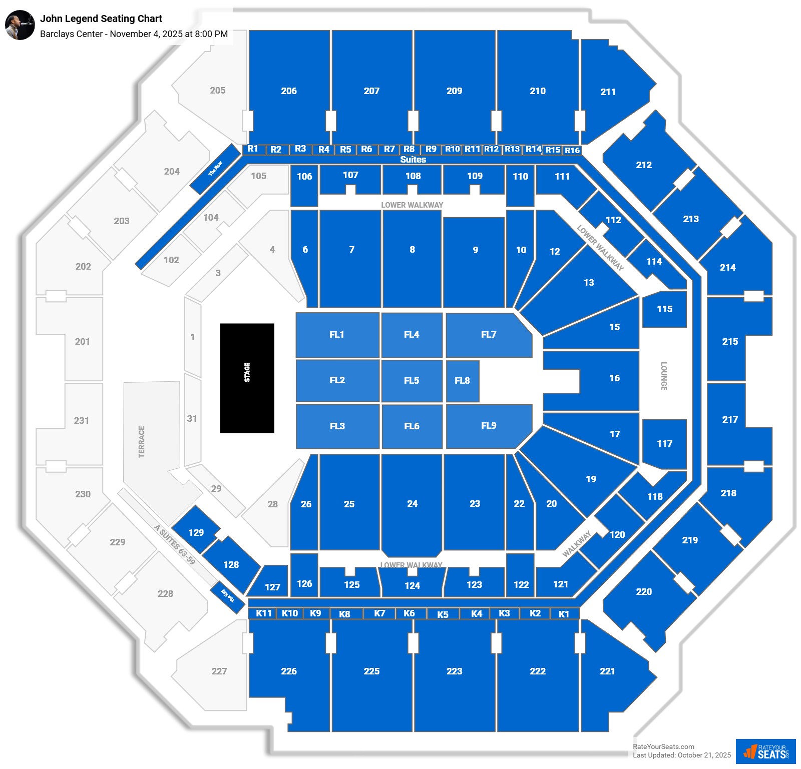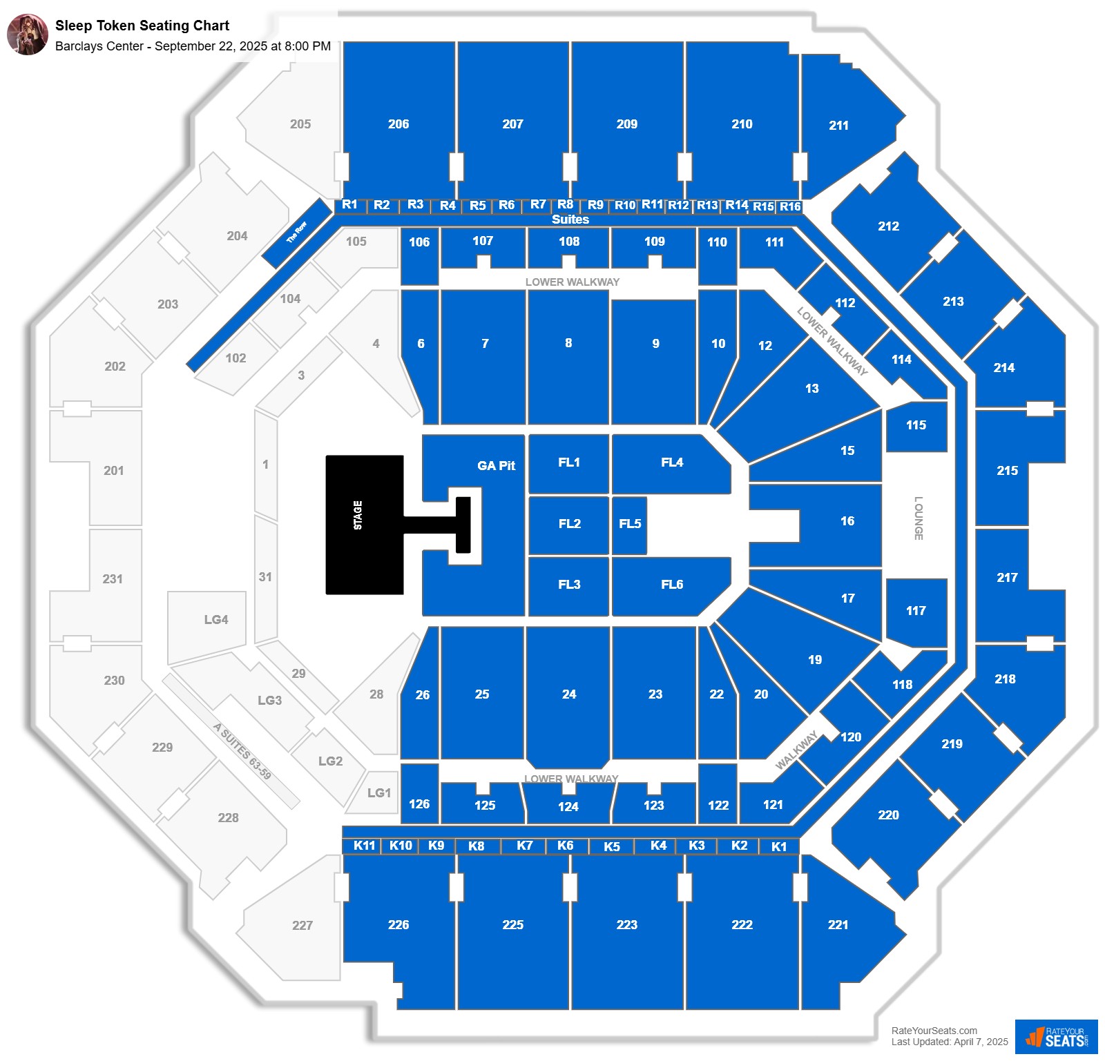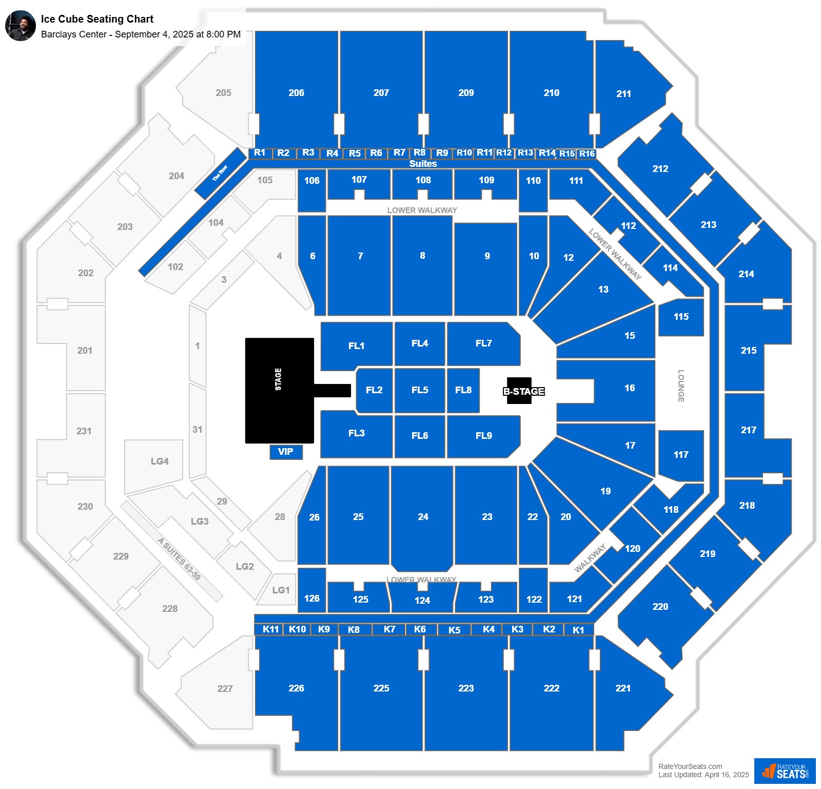 Barclays Center concert seating charts vary by performance. This chart represents the most common setup for end-stage concerts at Barclays Center, but some sections may be removed or altered for individual shows. Check out the seating chart for your show for the most accurate layout.