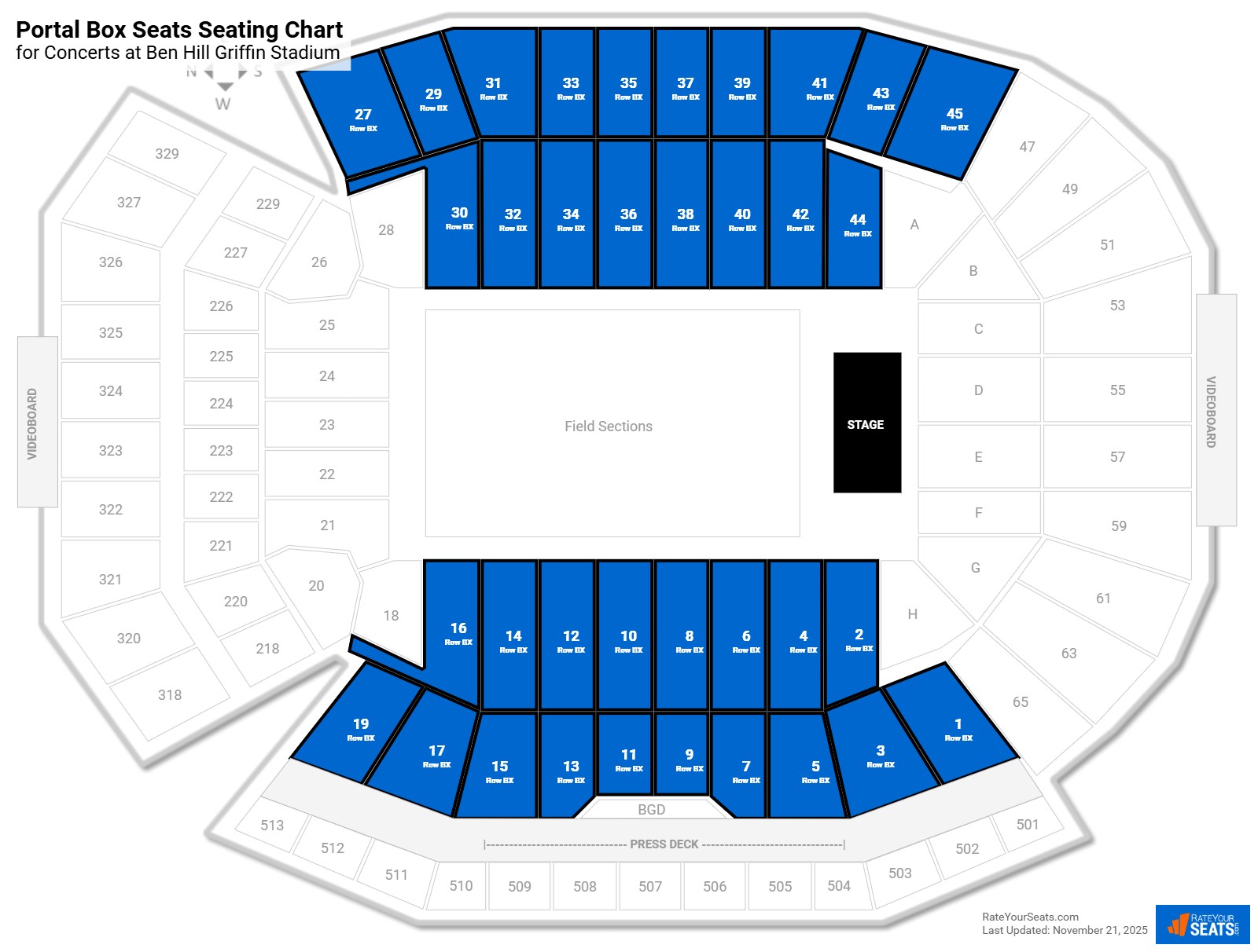 One of the most interesting seating options at Ben Hill Griffin Stadium are the Portal Boxes that are found on the east and west sidelines.