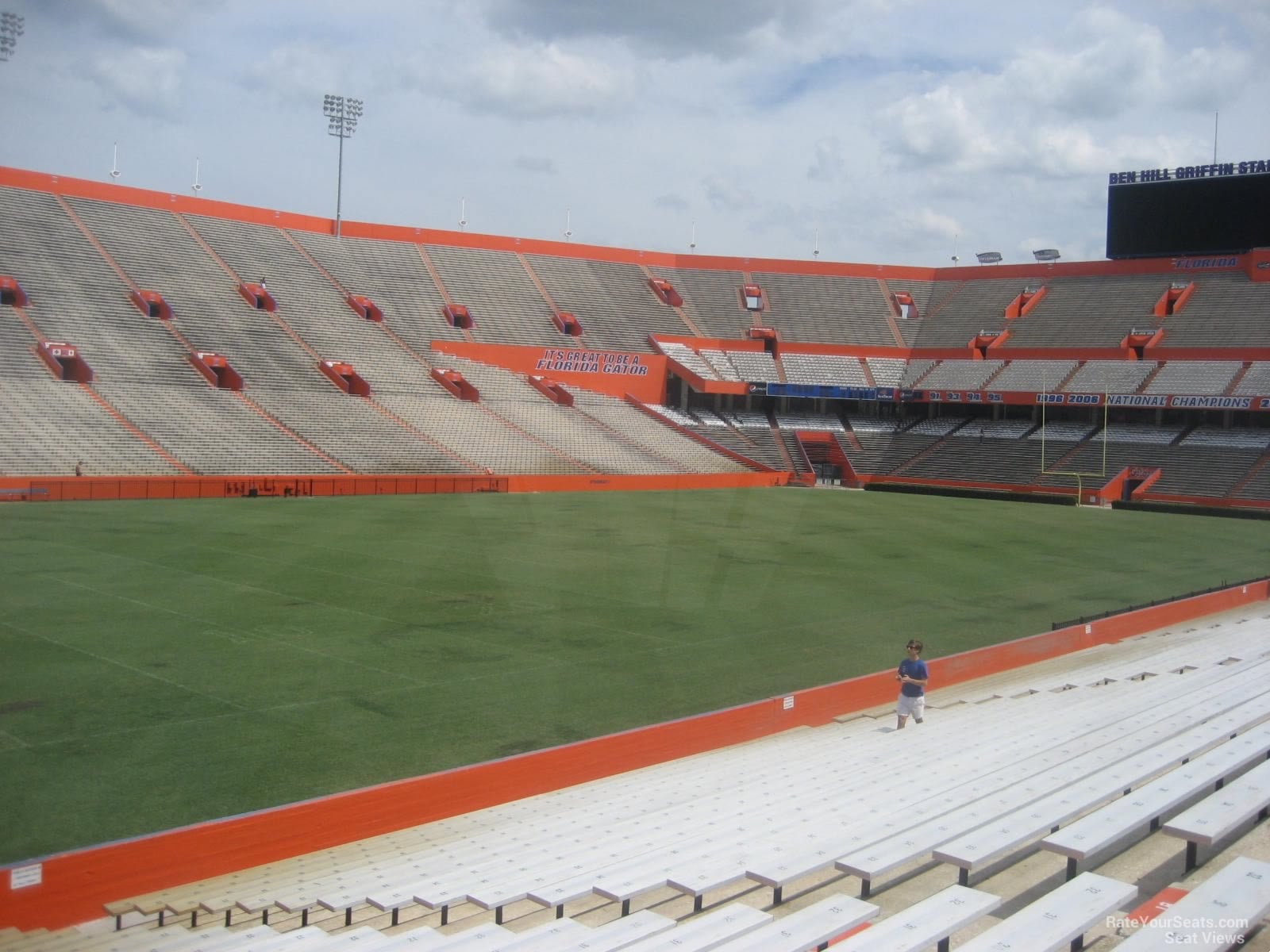 -While endzone seating may not seem like the most ideal place to watch football from, these seats are some of the most comfortable ares to sit in the lower level. On the South side of the field are the only lettered sections in the stadium and on the North side are sections 18-28. Each of these sections features comforts not found anywhere else nearby. An overhang on each side of the field covers the back portions of the sections, providing them cover and quite a bit of shade. In addition to the cover, these seats also feature chairbacks in many of the upper rows. For the most comfortable seating, choose rows 22 and above on the North side and rows 30-39 on the South side.