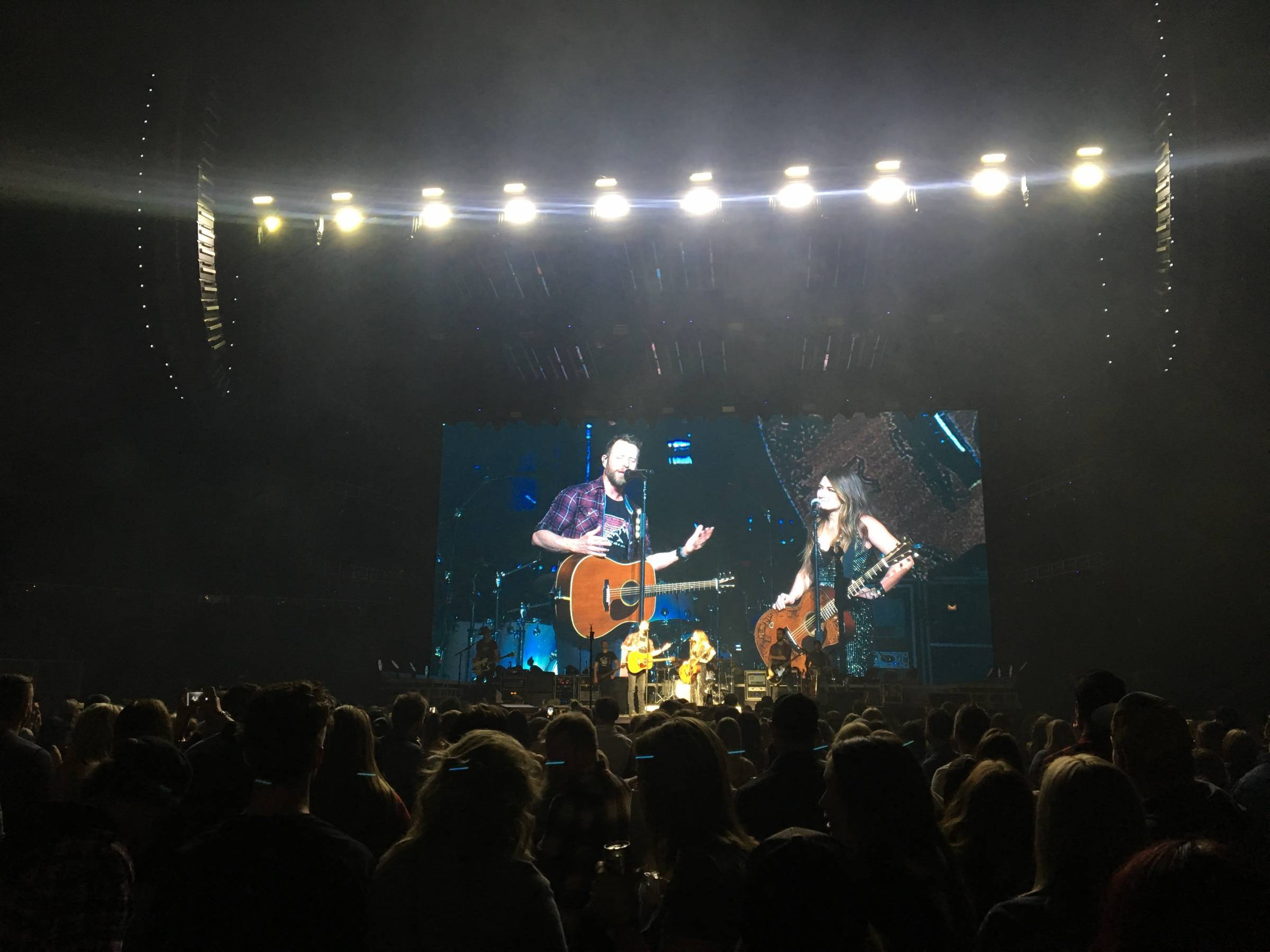The tour was broken down into four acts: Hot Country Knights, Tenille Townes, Jon Pardi, and Dierks Bentley. Hot Country Knights opened the show and caught me off guard. They were basically a five-piece, all male, parody country band full of all the country music cliches that keep me away from this style of music. It seemed to be a joke in the same way "Weird Al" Yankovic is a joke, but still I didn't see the appeal (more on Hot Country Knights later). From this point on, the acts really impressed me. Tenille Townes is a newer artist who has gained a ton of popularity with her 2018 breakout hit "Somebody's Daughter." She is also from Grande Prairie, AB, making this show in Edmonton basically her homecoming performance. I think she showed tons of potential and her humble attitude on stage made her very likable. Jon Pardi was more your classic style of country singer, fit with cowboy hat, huge belt buckle, and tucked in shirt. He certainty brought the party and I'd argue the crowd was most hype during his set. Dierks Bentley ran onto stage with a huge video screen behind him, clearly the headliner. As someone who has been in the game since the early 2000s his set was the most polished and he didn't disappoint.