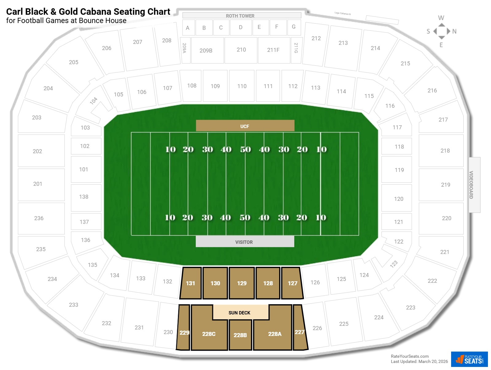 The sun deck and lounge will be open extended hours before and after the game. But during the game, you'll be seated on a chair with a back between the 30 yardlines. With fantastic sitelines towards the field and an amazing social scene, the Carl Black & Gold Cabana offers a new way to experience UCF football.