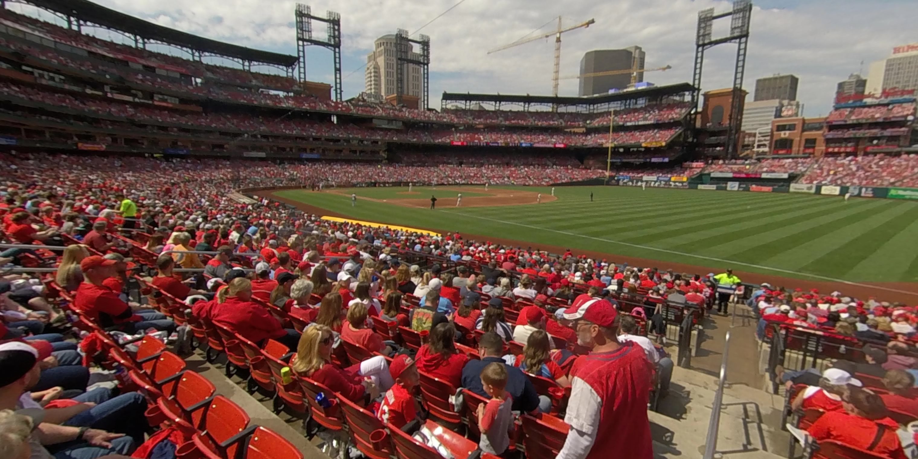 -Field Level Outfield seats are located on the lowest tier of Busch stadium, between the corner bases and wrapping to the corners of the outfield walls. Most sections in this location are segmented into three distinct smaller sections. Upper portions are tucked up near the overhang of the 200 level and lower sections go right up to the field. Sections 127-140 are located on the first base side, with the higher numbered sections being closer to the Cardinals dugout. Closest to the field on this side will be the Dugout Box seats, followed by the 1st Base Field Box (closer to first base) or the Right Field Box (closer to right field). Sections 127-129 are the only sections located in fair territory on the right field side and provide a good opportunity to catch a home run ball. Not all sections on the right field side run up to the outfield wall, as sections 133 and 134 are further set back and do not extend all the way down to the field. On the left field side are sections 160-172, with the lower numbered sections being closer to the visitor's dugout and the infield. Closest to the field on this side will be the Dugout Box seats, followed by the 3rd Base Field Box or the Left Field Box depending on how close you are to third base. Sections 170-172 are located in fair territory behind the left field wall and are a great place to sit for home run balls. Just above are the Left Field Porch sections which offer some of the best shade at Busch Stadium in the hot summer months.