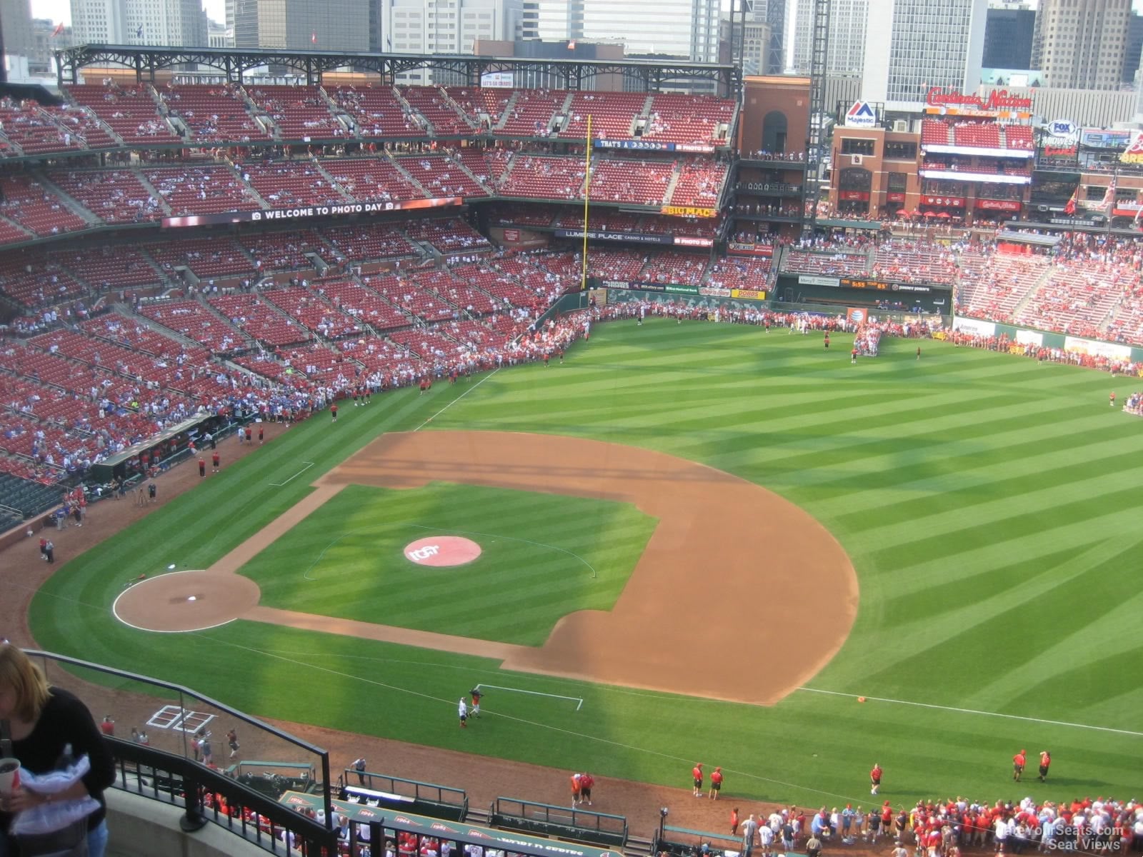 -The Terrace Level Infield is located on the highest deck at Busch Stadium and are the furthest set back of any sections at the ballpark. With some of the furthest views to the field and high exposure to the sun in the lower rows, there are better options for taking in a Cardinals game. However, these seats are usually affordable and do provide good views of the scoreboard and the St. Louis Arch and skyline in the background. The last few rows of the terrace level will have some protection from the sun with a small overhanging roof above.