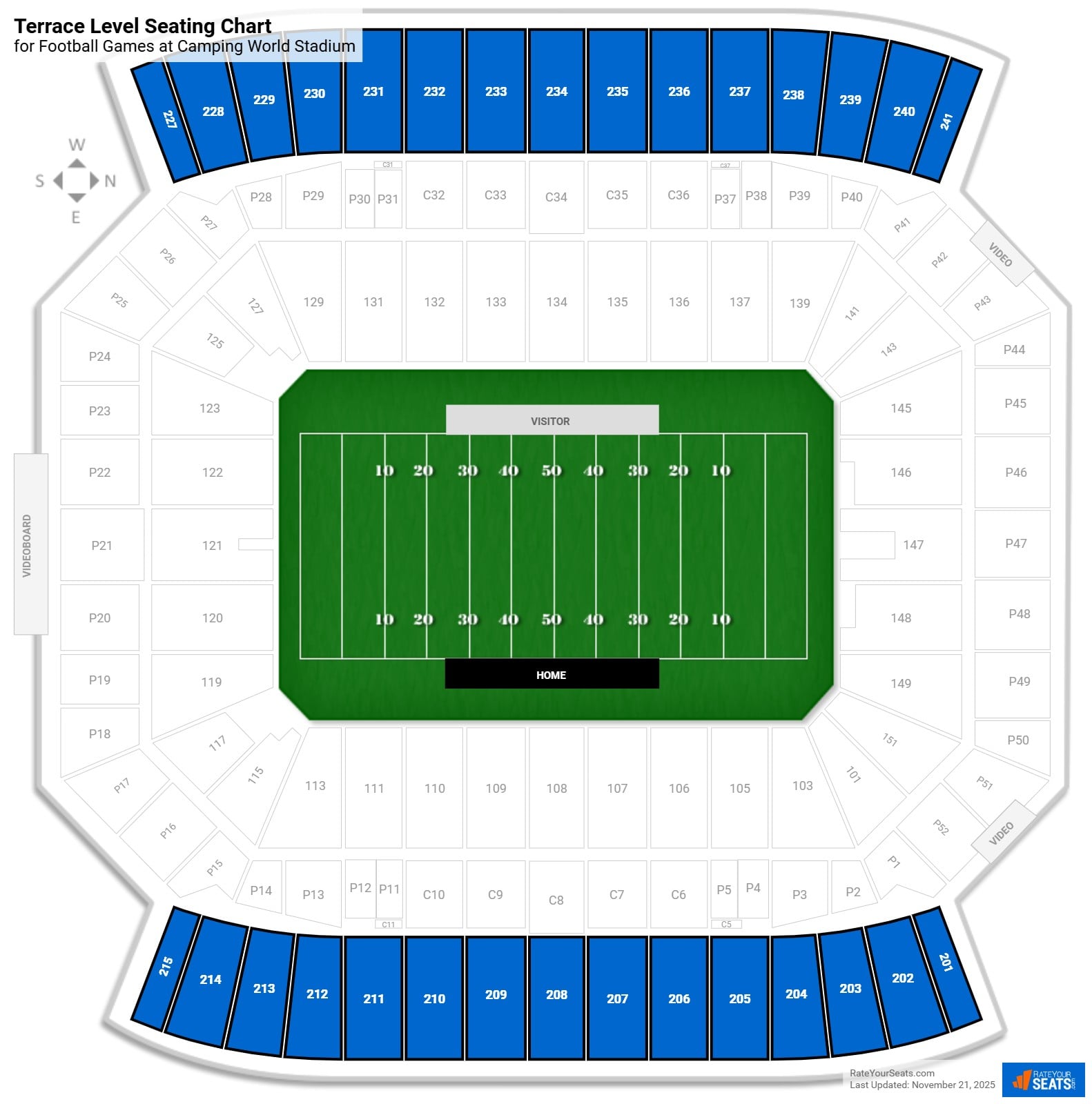 The Terrace Level at Camping World Stadium is another name given to the upper deck. Sections 201-215 and 227-241 make up this level of seating.