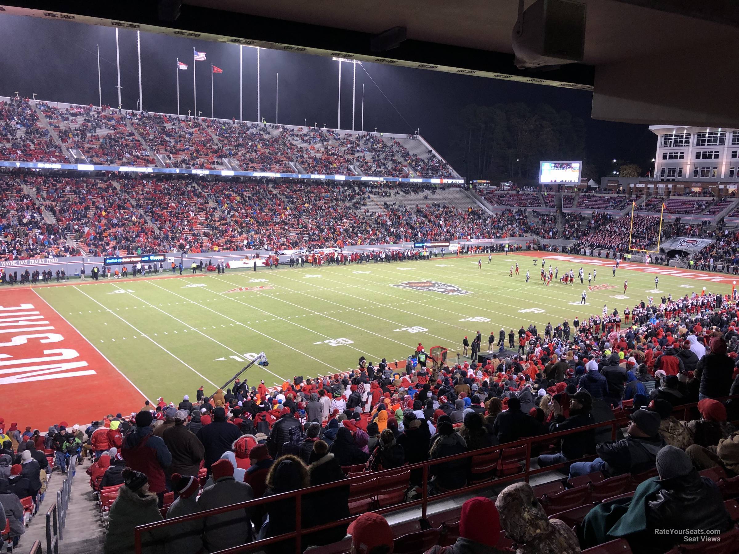 -Spanning between the endzones on the lowest seating tier at Carter Finley Stadium, the lower level sideline sections are the best place to find a close view near midfield. Sections 7 and 8, as well as the west half of Section 6 are reserved for Student seating, but the remaining sections are available for purchase by the general public. Sections in this location have as many 46 lettered rows of seating, which start with the single lettered rows in the front of the section, and the double lettered rows located behind.