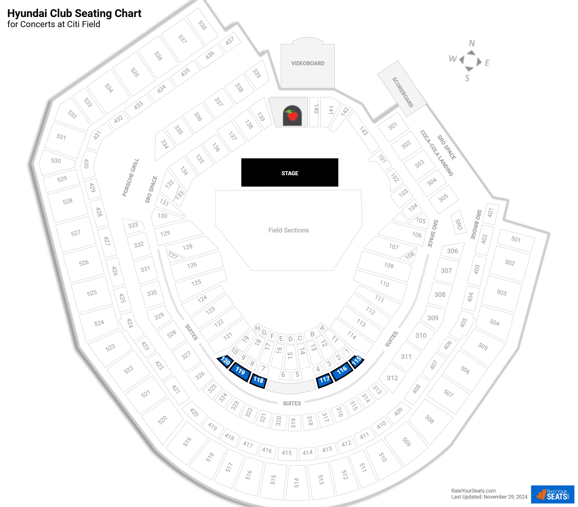 The Hyndai Club at Citi Field is located on a private seating tier just above the lower level Delta Club and Sterling Suites. Sitting here offers one of the more unique seating options for Mets games. Although not right at field level, these slightly elevated sections are still very close to the action and offer excellent views of the game.