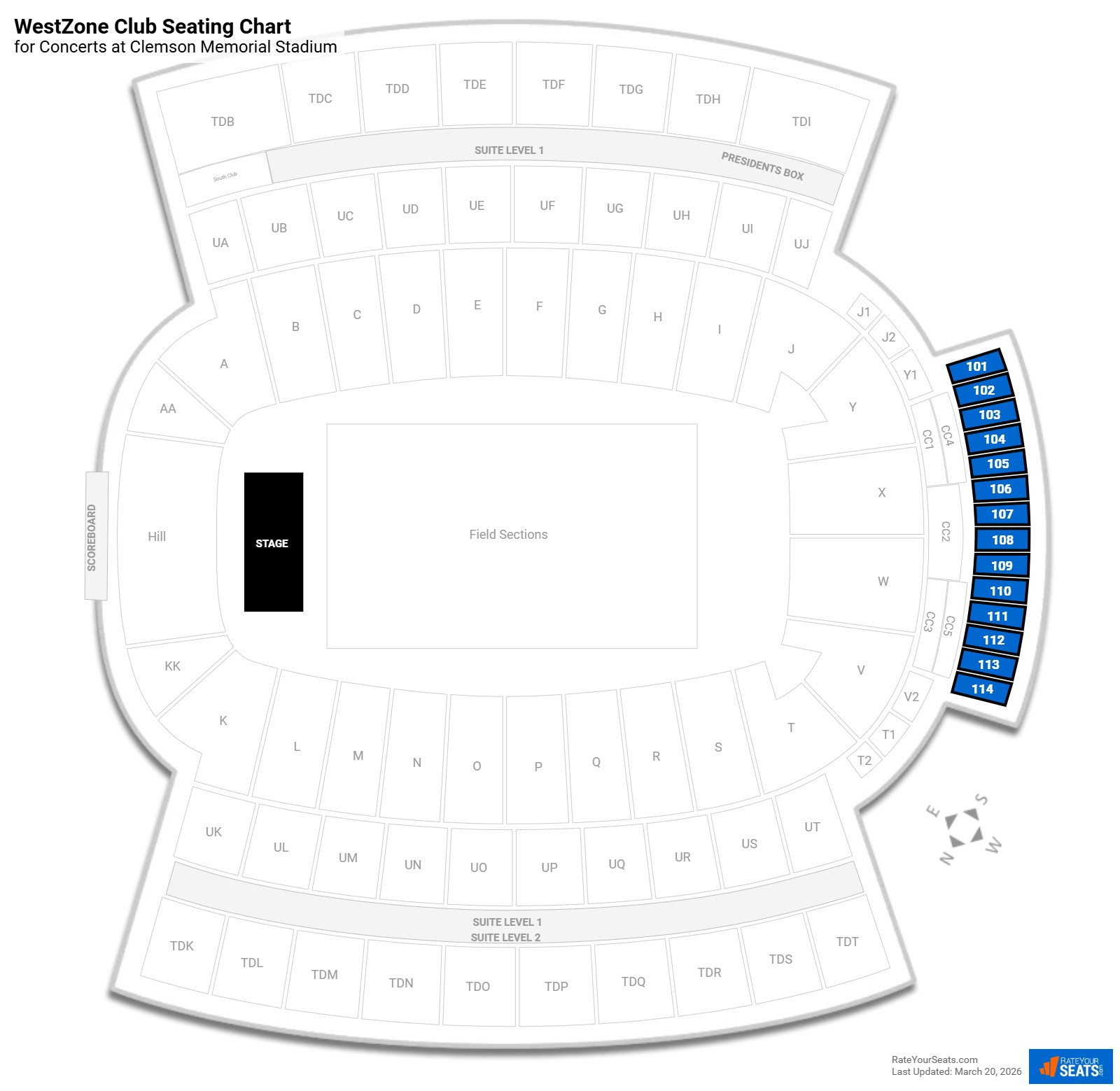 WestZone Club Seating Charts