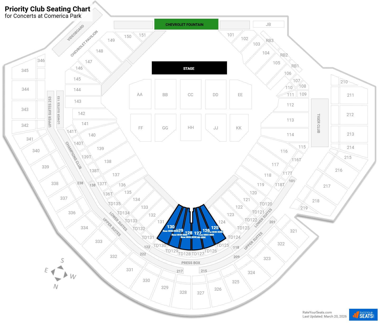 Fans looking for the best deal on Priority Club seating should consider the first three rows (HHH–KKK) in Sections 125-130.