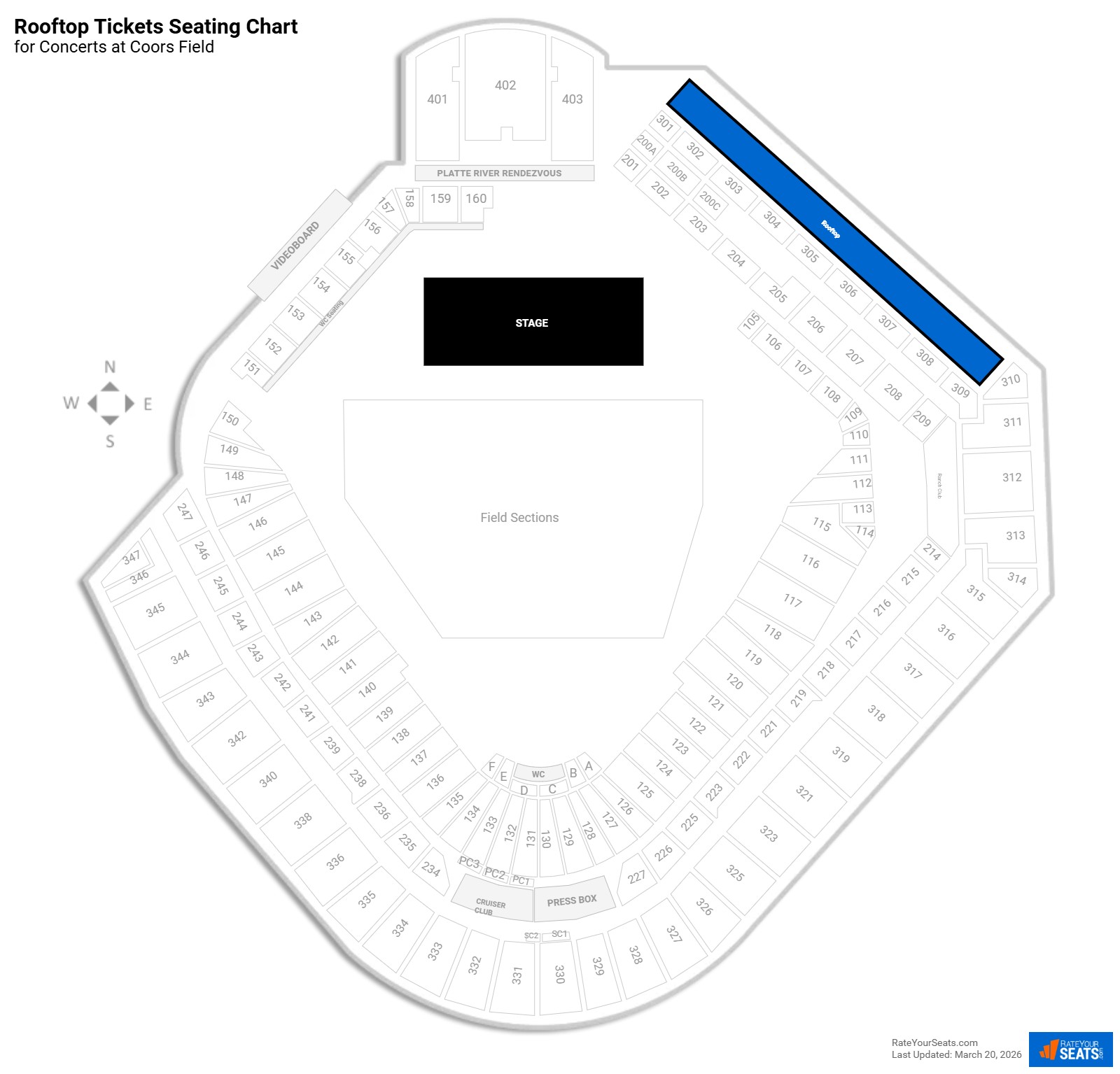 Rooftop tickets are typically general admission standing-room tickets, but for some games fans may also be able to access Sections 310–314 for seating.