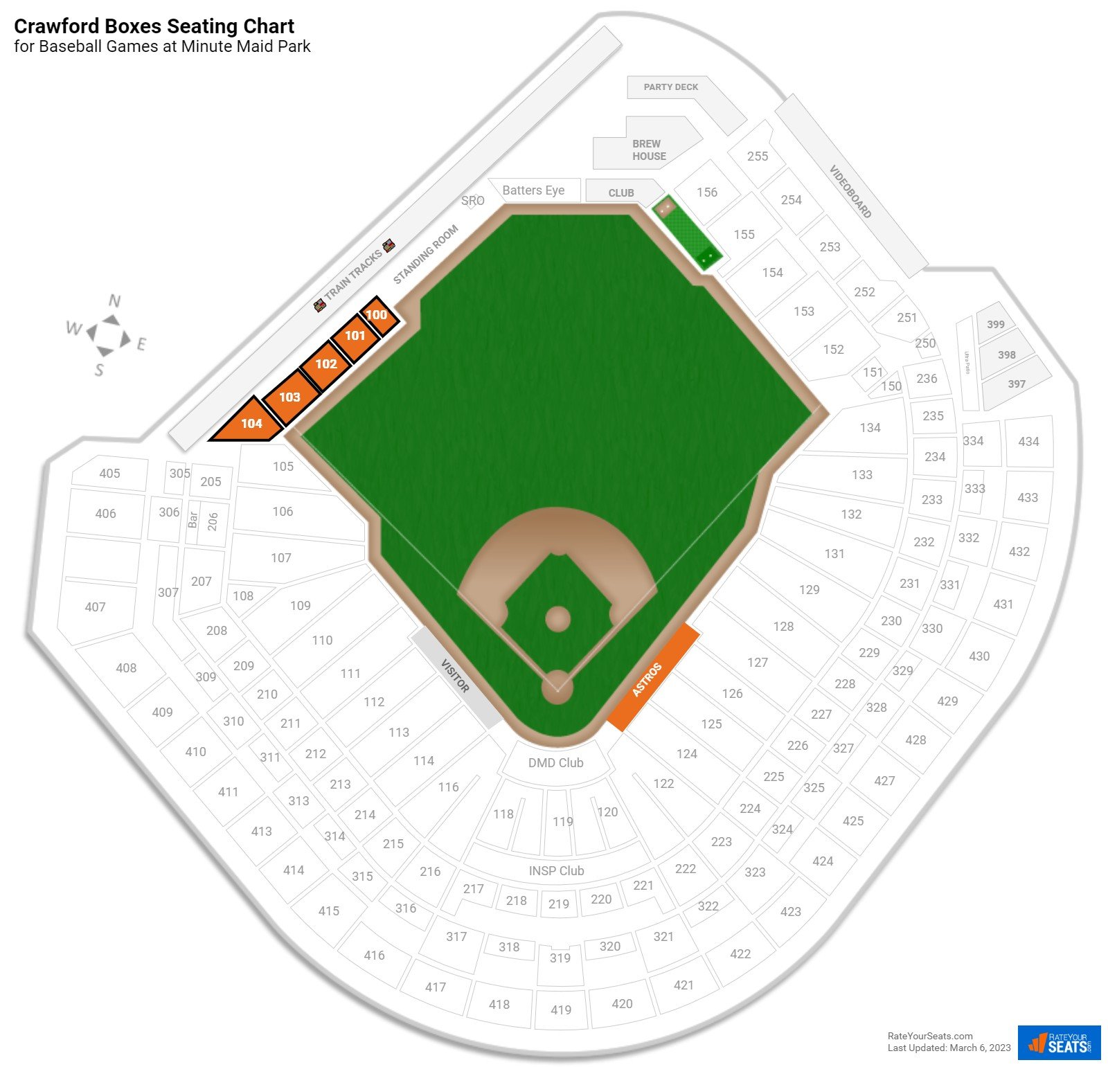 Another benefit is that these are some of the smallest sections in the stadium creating a less crowded atmosphere and making it easier to get in and out. The amenities are thin near the Crawford Box seats, so sit in 104 if you want to be close to concessions and restrooms on the main concourse.