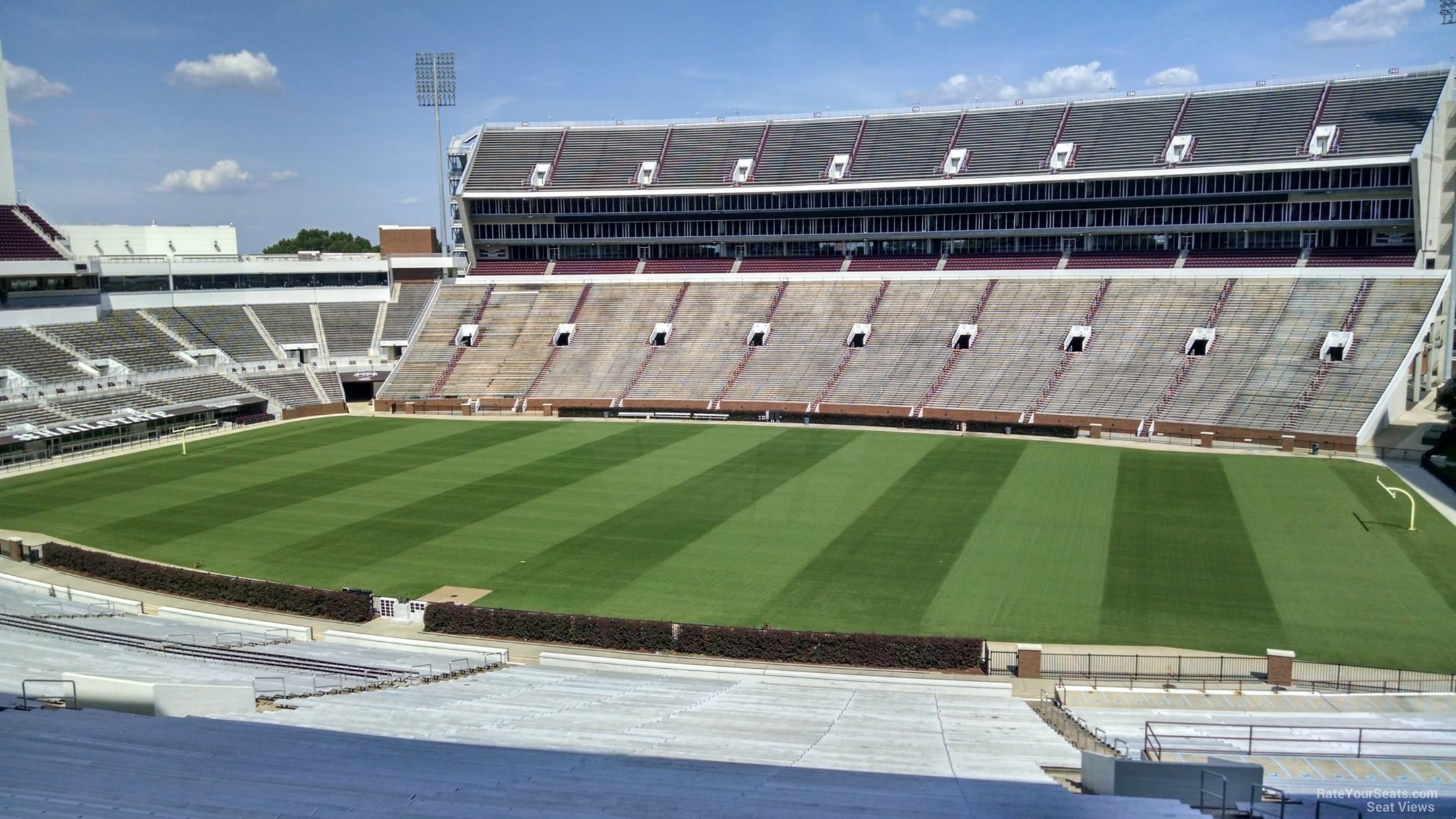 -The expansion of Davis Wade Stadium preserved most lower level bowl sections. Each section contains up to 59 rows of seating and some of the best views in the entire stadium. Sideline Seats Fans seated close to Row 30 will only have to navigate a few steps to their seats, and will be at an ideal height for seeing the whole field. The State sideline is on the West side of the field (Sections 01-07), leaving the visitor side of the field as the sunny side. Rows 45 and higher in Sections 03-05 will be the first to be shaded during the afternoon. Sections 101-113 are an extension of the West stands and include nine rows of seats beginning at Row 60. These seats are fully covered - but beware of the high rows - views of the scoreboard are blocked by the overhang. North Endzone North endzone seats are reserved for State students. These sections feature up to 40 rows of seats with good views of the North scoreboard. High rows in Sections 10-13 provide the best views of the field and are often shaded by the scoreboard behind them.