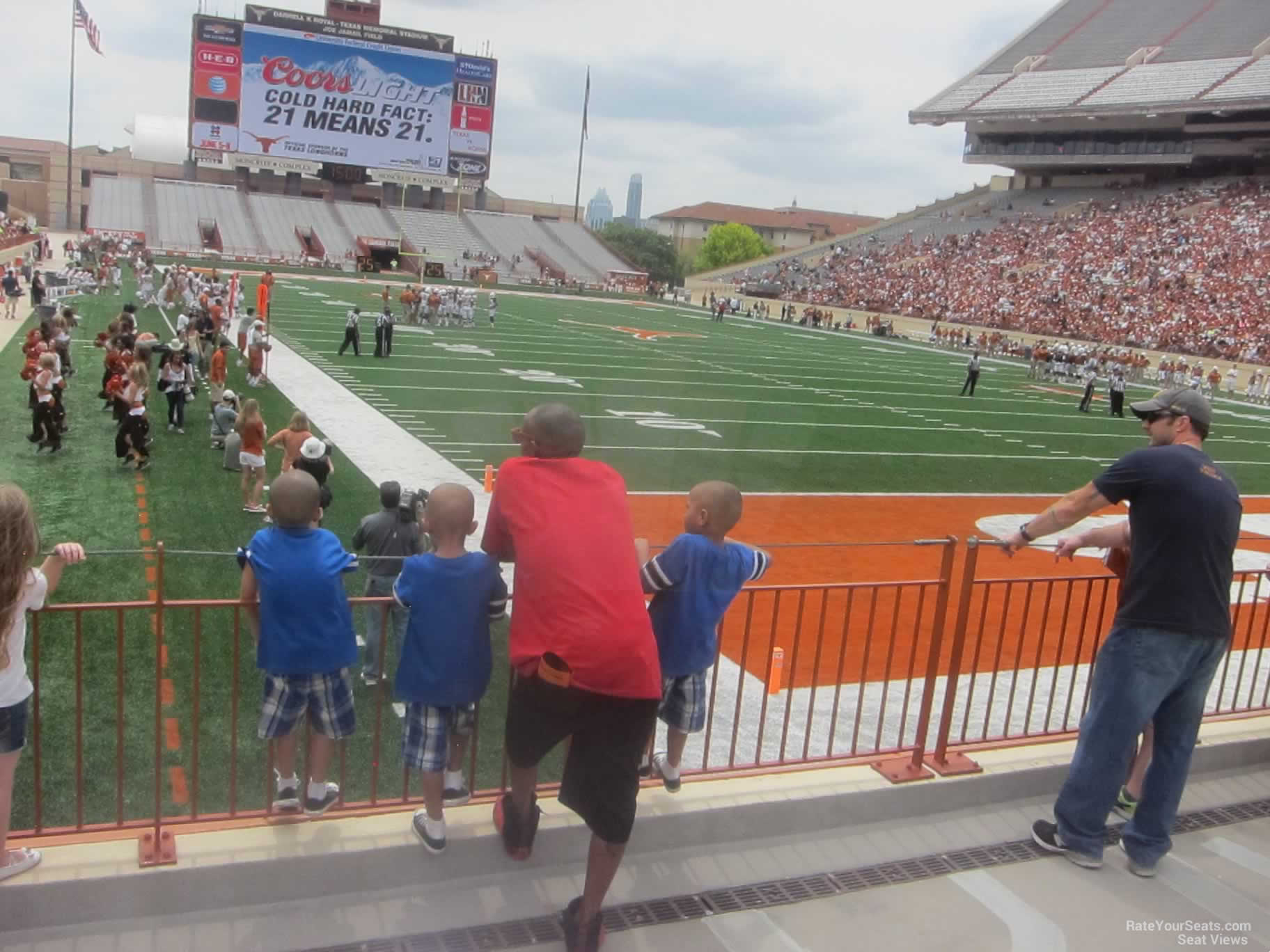 -Sections in the Lower Level Endzone give fans an excellent view for scoring drives at the near endzone, but can have difficult views of the far end of the field especially in the lower rows which have less elevation above field level. Seats in the south endzone are in sections 16-19 are designated for Texas student seating. Seats here are close to the action, but have very little elevation to see the far end of the field, and require a 180 degree turn to see the large videoboard just behind the seats. Better overall views can be found in the north endzone, where fans can enjoy the action on the field and amazing head on views of the large videoboard. Each section in the north endzone features 52 rows of non-premium seating, followed by 11 rows of Terrace Club seating behind (Rows 54-64). Terrace Club (also known as Chairback Club) seats offer fans a comfortable place to watch the game thanks to chairback seating, minimal head turning to watch the action on the field, and excellent views of the large south endzone videoboard.
