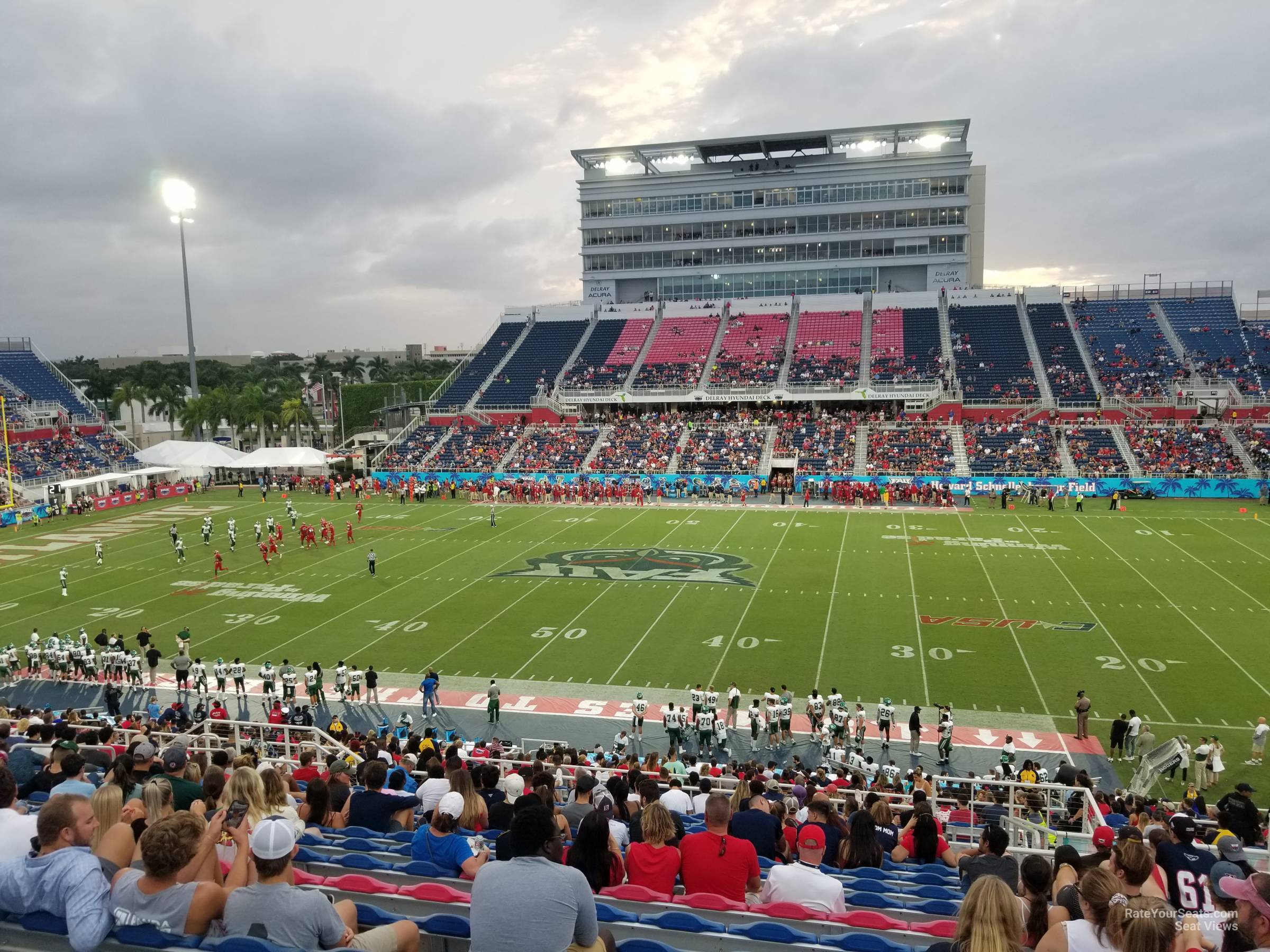 -Upper sideline seats offer good views of the field from a traditional perspective, but sit further from the action than the lower level options. On the west sideline (Sections 201-211), fans will be behind the home team sideline and enjoy chairback seats with armrests. Sections 223-230 on the east sideline are behind the visitor bench, and also feature chairback seating, but without the armrests. Sections here have up to 32 lettered rows of seating, with the single lettered rows being closer to the front of the section and the double lettered rows located higher up. Section 230 is designated for visiting team fans during FAU home games.