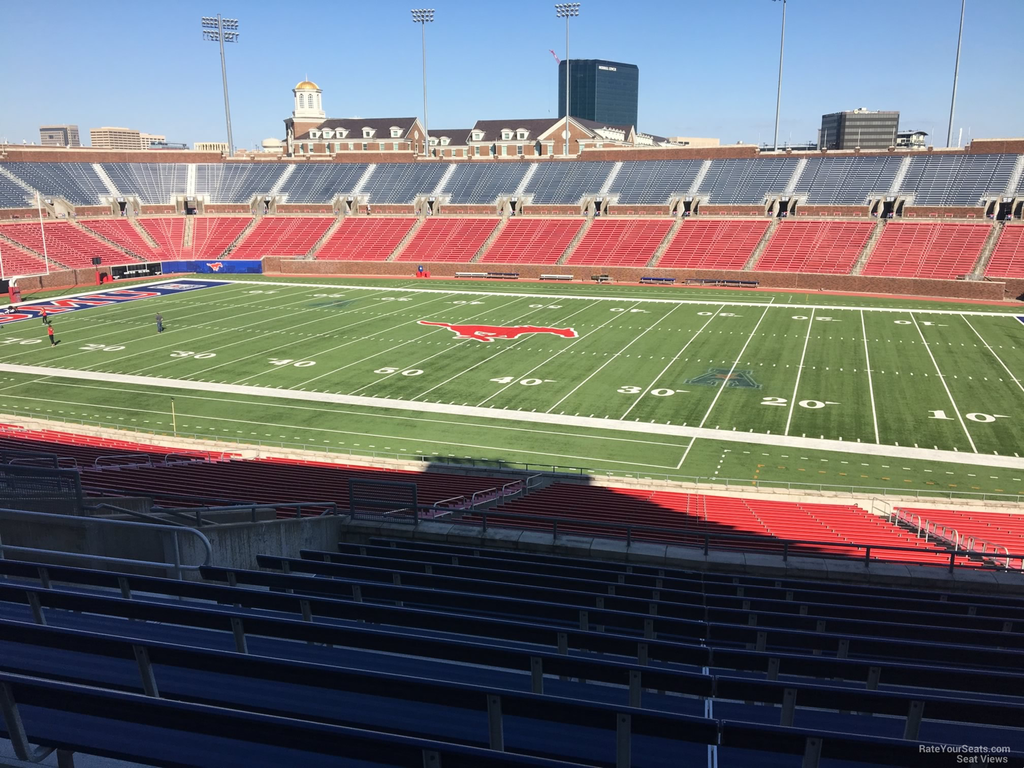 -Located just above the tunnels and 100 level sections is the Upper Level Sideline location. Like most seats at Gerald Ford Stadium these seats are bench-style. Each ticket represents a spot on the bench which is labeled for each row. These seats will have back rests for some extra comfort. For the best views of the SMU football game. Look at sections 203-205. These seats give the best view at midfield which will provide comfort when watching the game. These seats are also desirable because they are on the West side of the stadium which is the first to receive shade. Finally, due to the Stadium Club up above, these sections will only have 16 rows making them smaller and less congested.