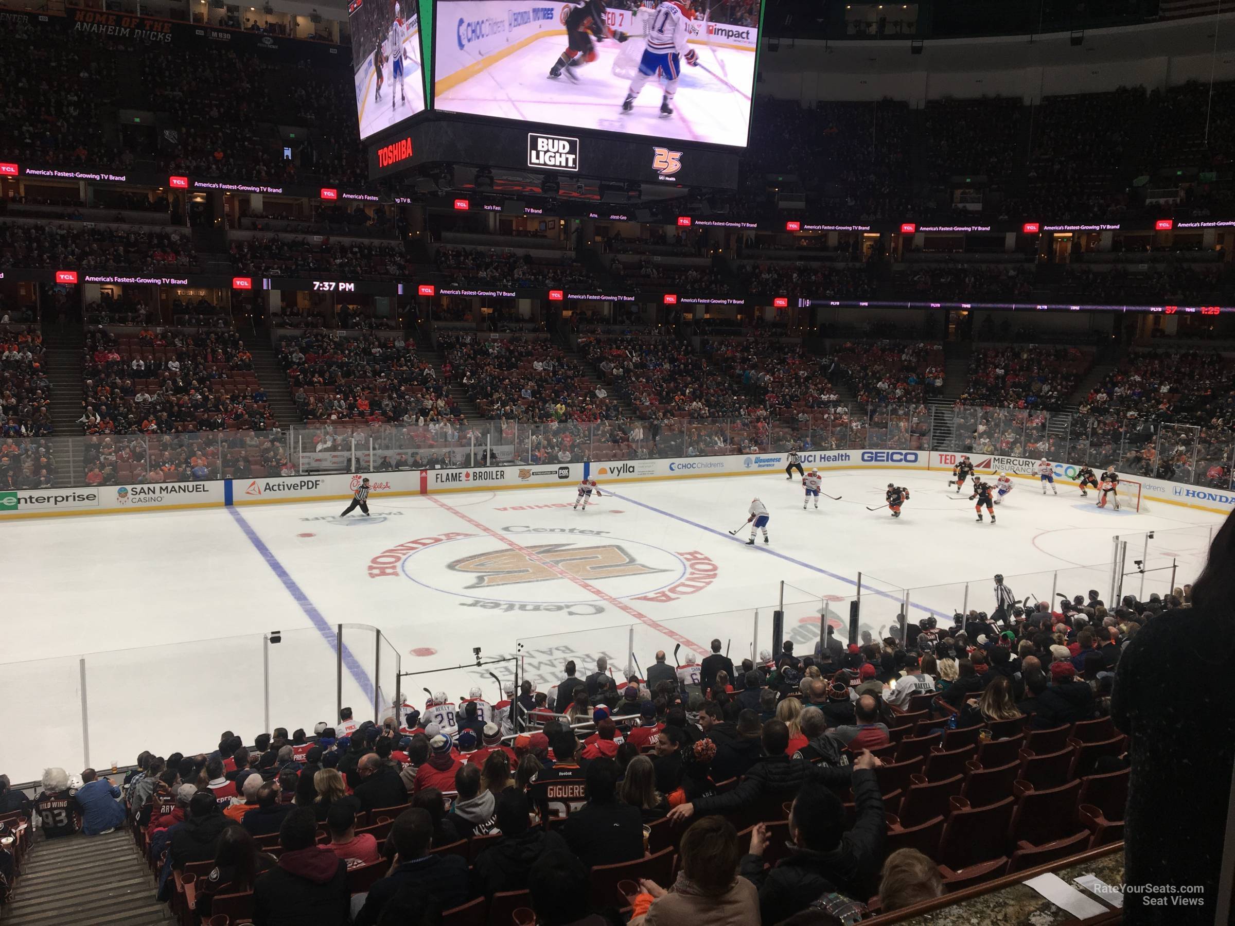 -If you're looking for a once-in-a-lifetime experience at a hockey game, consider the Glass Seats for a Ducks game. These seats are located in row A of the Plaza Level - with just a few inches separating you from the players. Glass Seats tickets are hard to come by, but if you have a choice of where to sit, we recommend choosing a section in the corner. You'll have the absolute best view of face-offs and goals on the end closest to you. And you'll be able to see down-ice towards the other end - something that may be difficult closer to center ice (thanks to the players getting in the way!).
