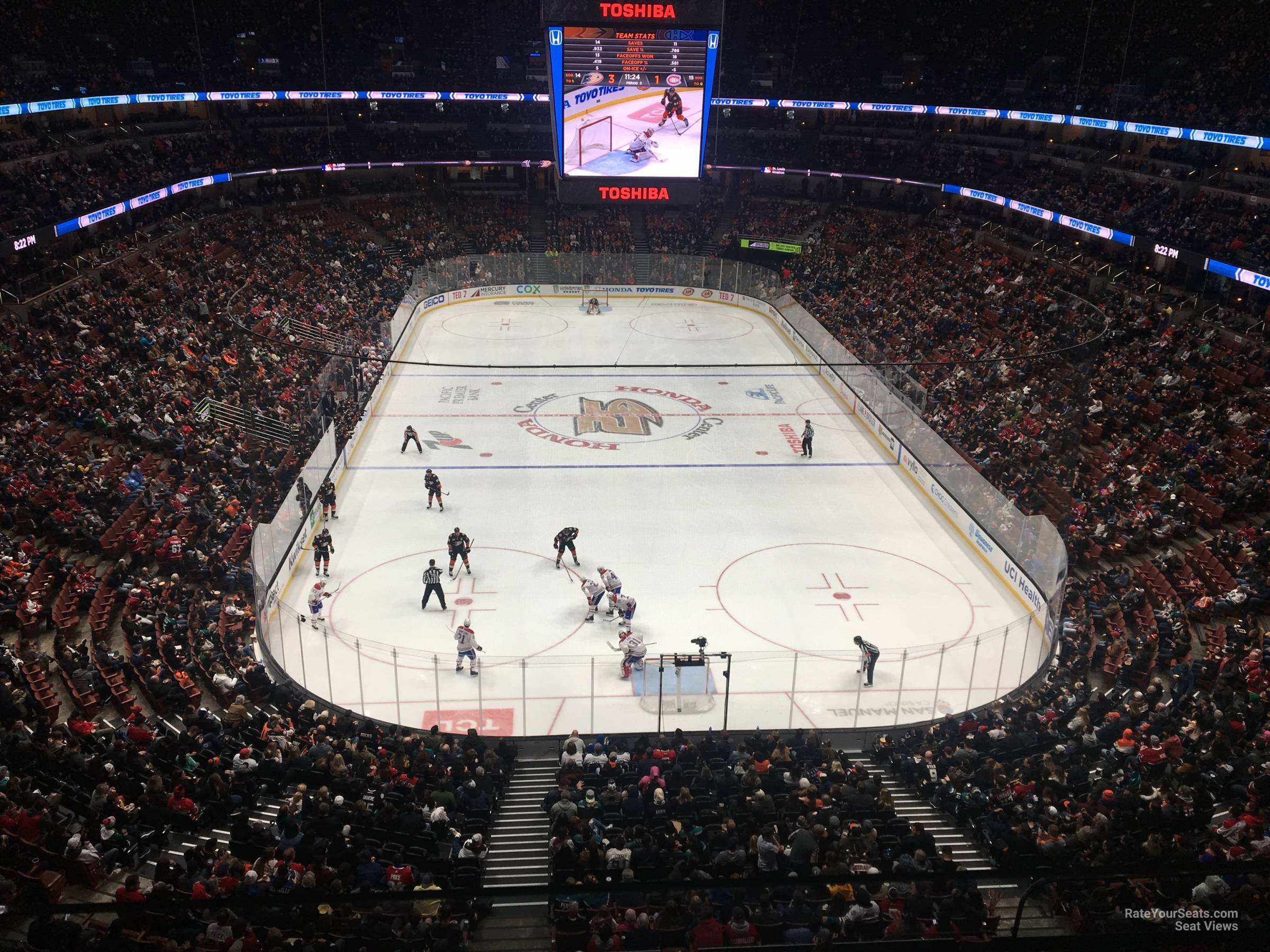 -On the Honda Center seating chart, 400-Level sections are also known as Terrace Level seats. When purchasing tickets in these sections, it's important to know what to expect. The Best Seats Are in the First Three Rows For both concert and hockey, rows A-C in each Terrace section are far superior to rows D and above. These rows are below the entrance tunnel, which means that you don't have to worry about fans blocking your view as they make their way to their seats. Another reason to sit in a lower row is the steepness of the Terrace Level. Fans making their way to the last row (Row U) will have to climb roughly 20 rows of steps (40 stairs) each time their enter/exit their seats. And as you might guess, the view is considerably better at the front of each section. Other Considerations on the Terrace Level For concerts, side sections like 412 and 413 are closer to the stage than most guests expectEnd sections (e.g.: 401, 444) are farthest from the stage Rows are labeled A-U in most sectionsAn entrance tunnel is located at Row C The Ducks shoot twice towards sections 421-424