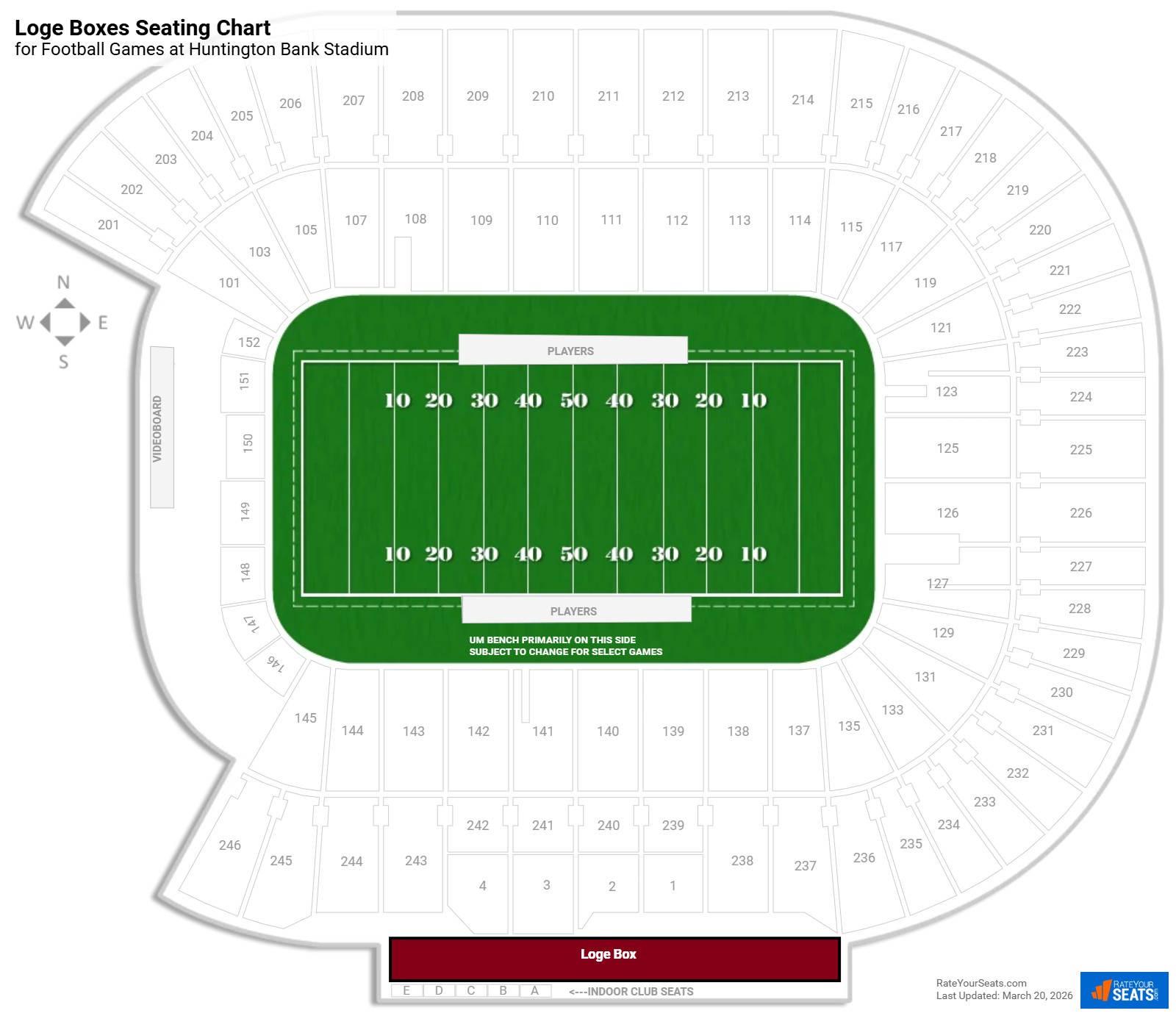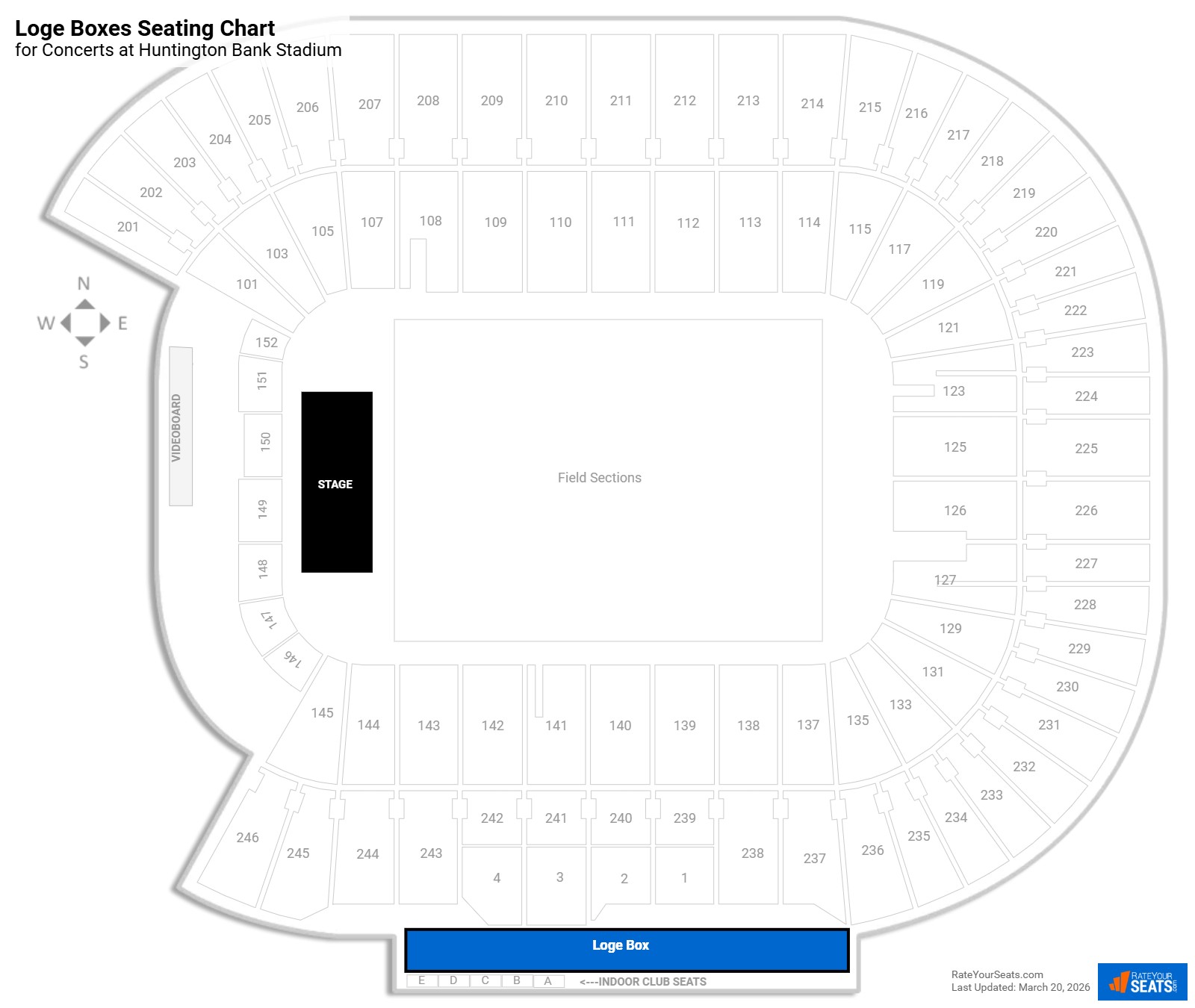 The Loge Boxes at Huntington Bank Stadium are covered mini-suites that offer fans outdoor club seating and an upscale experience. Each box accommodates 4-6 fans, who sit on comfortable, movable chairs.