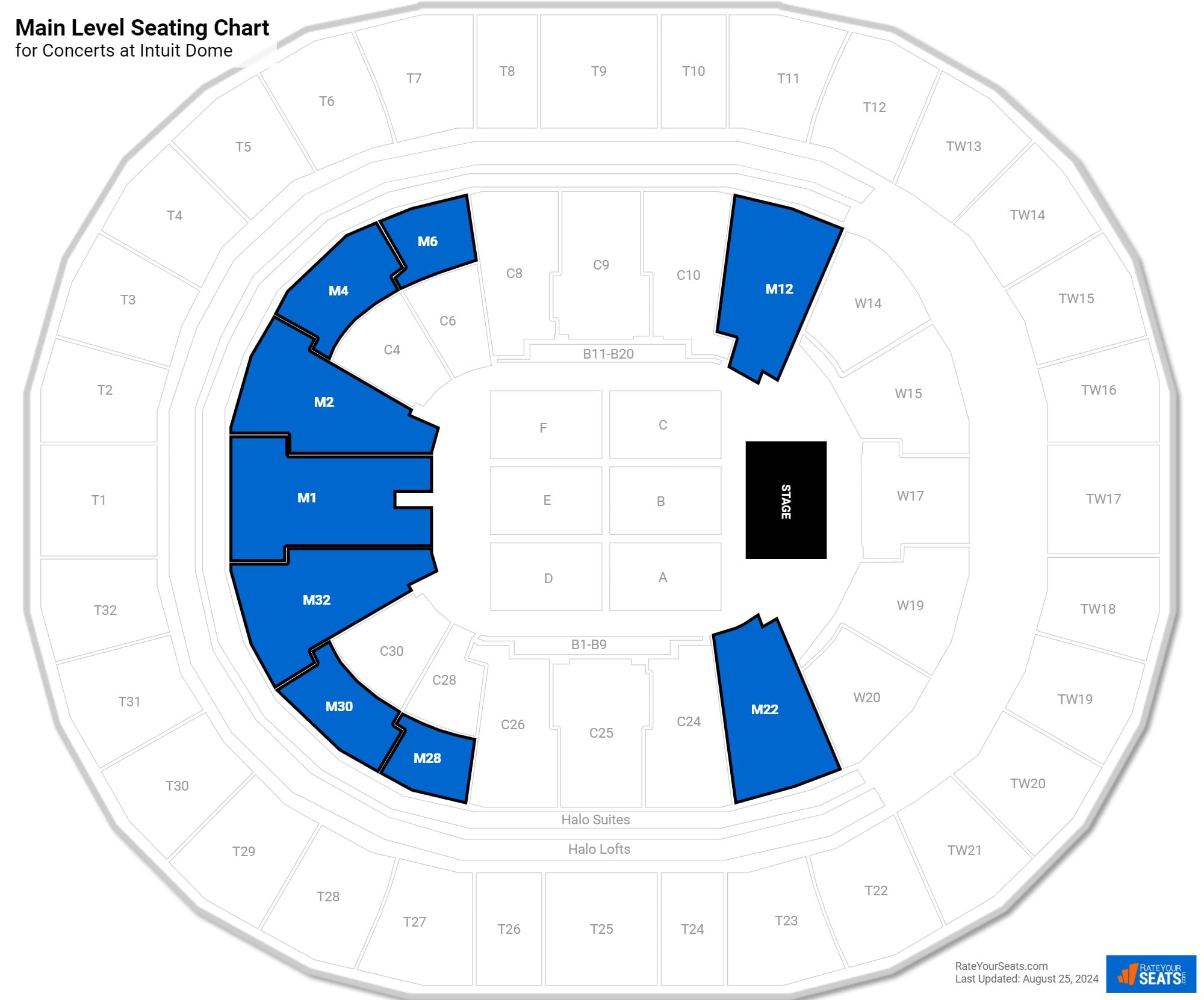 The lower level at the Intuit Dome includes 9 non-club sections referred to as the Main Level Sections.
