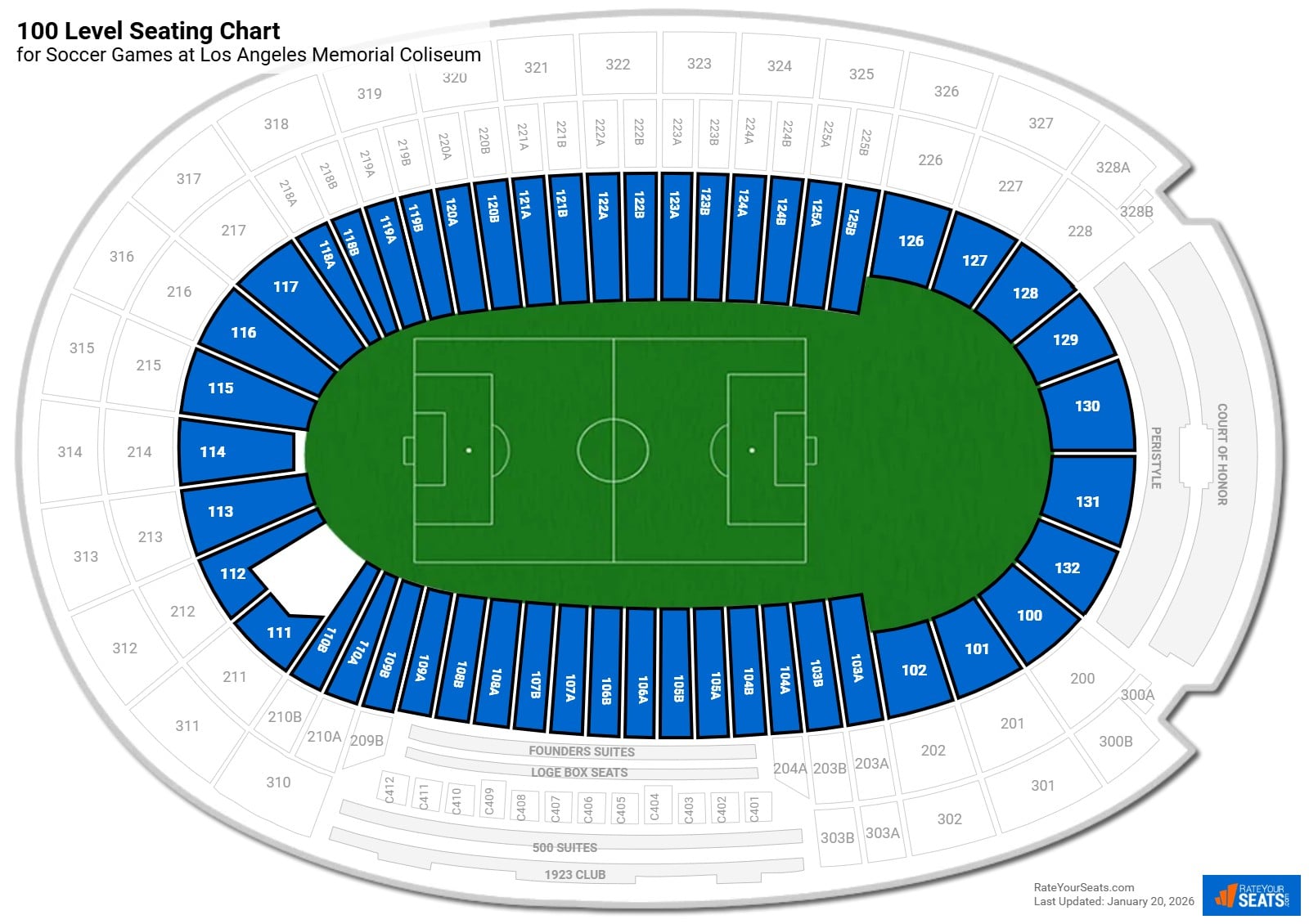 100-Level sections at Memorial Coliseum is the lowest level of the seating bowl. Each section has between 40-45 rows.