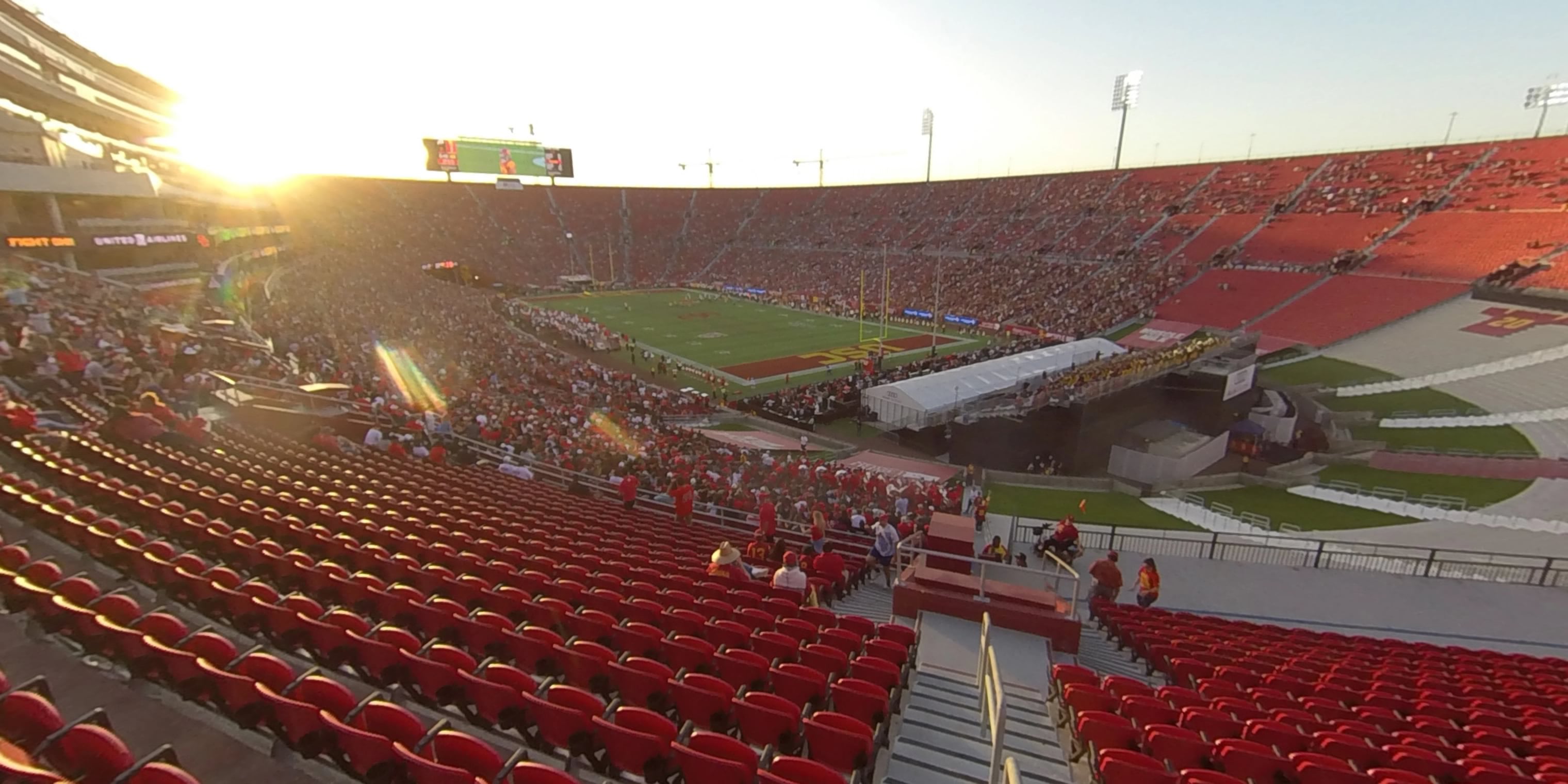-The unique size and shape of the Coliseum makes corner seating highly inequitable. Corner seats on the East side of the stadium are about 100 feet farther from the action than similar seats on the West side (Sections 109B-111 and 116-118B). The unique shape also gives Sections 100-102 and 126-128 and above very poor angles to the field. While East side corner sections should be avoided, some corner seats on the opposite end of the field offer great value. The 200 level sections in Sections 211 and 216 offer phenomenal views of the entire field at a fraction of the cost of Sideline seating. When the action moves to the far side of the field, it will seem far away - but the cost savings is worth the squinting of the eyes. Some seats in Sections 125A-127 and 225A-228 in this location are reserved for student seating. Those sections are also the sunniest and hottest sections in the stadium. Contrast that with Sections the Southwest corner which won't be blinded by the sun and will have it set behind them during the late afternoon.