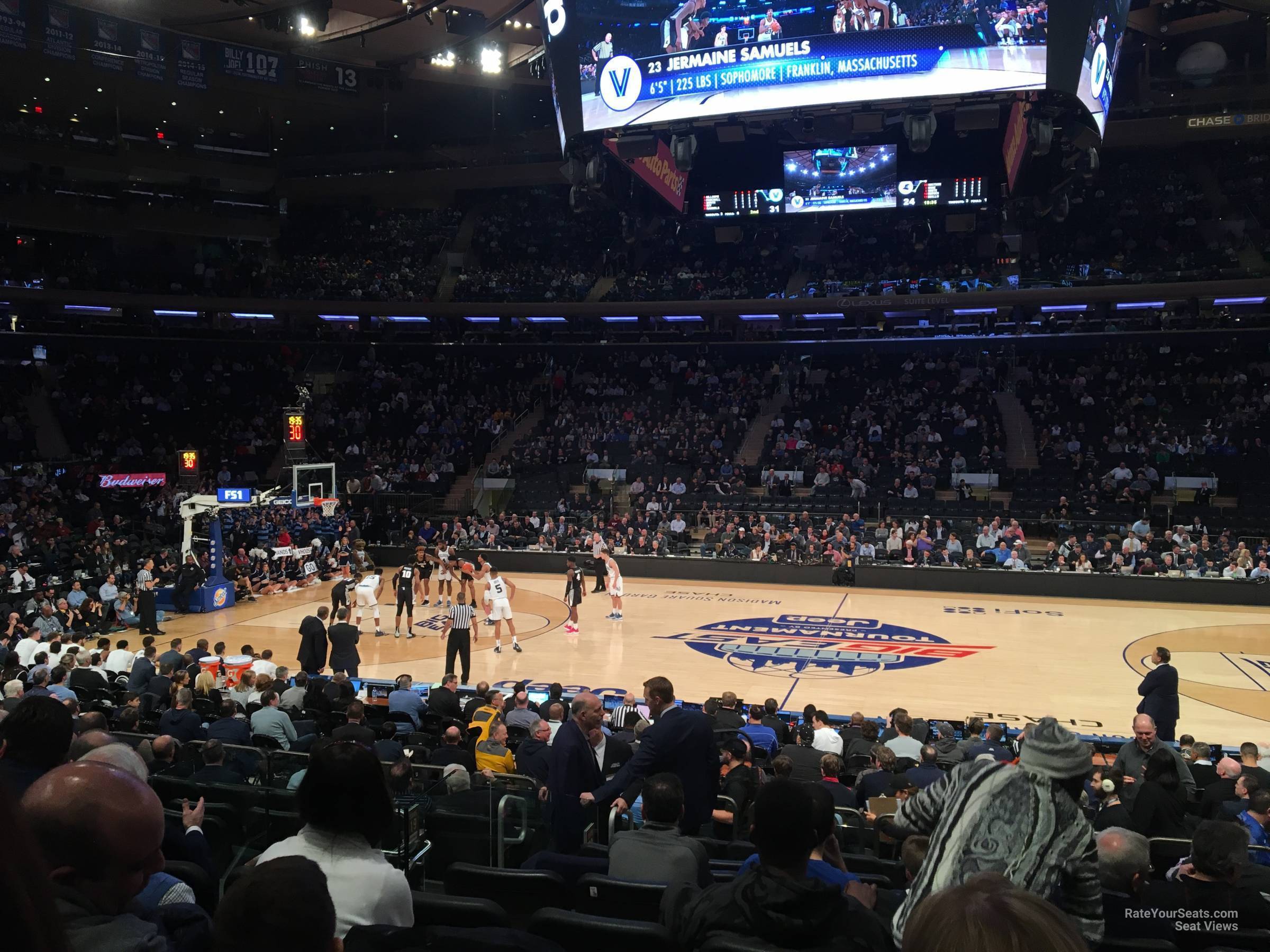 -These seats offer some of the best views of the court for a Knicks game. The height of the seats is better for seeing the whole court than the single-digit sections directly in front and the price tag is much, much less. Section 108 is behind the Knicks bench and is a great option for New York supporters, while visiting fans will prefer Section 106 behind the visitor's bench. Row 1 is at the front of Sections 106-108, but seating looks a little different on the opposite side of the court with the Event Level Suites occupying the front portion (Sections 116-118 don't begin until Row 6).