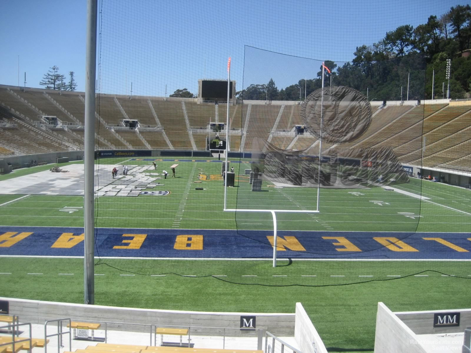 -As with corner seating, all endzone seating at Memorial Stadium is on metal bleachers without a back. These seats are heavily exposed to the elements and will have no protection in the event of rain or from the hot rays of the sun. The north endzone (Sections A, AA, etc.) is also known as the Gold Zone and will give fans a chance to sit with fellow alumni or other Golden Bears faithful. On the opposite side of the field, visitor seating is found in Sections N and MM. Both sides of the field feature just OK views of the field and head-on views of the small videoboards.