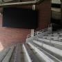 The overhanging balcony seats on the east side provide overhead coverage in Rows 50 and higher but can cause obstructed views near the back. The west sideline has smaller seating sections with 43 numbered rows of seating, and entry tunnels at Row 25.