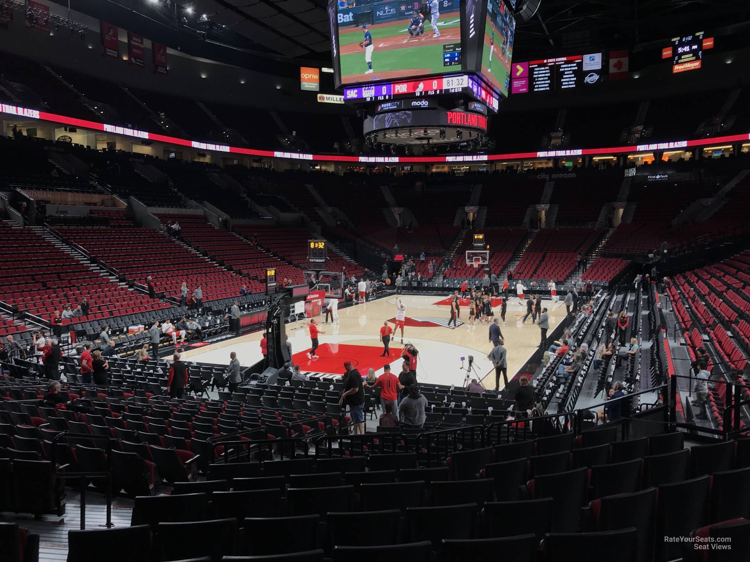 -Baseline seating in the lower level is made up of sections 105-108 on the north end and 116-119 on the south end. Both sides offer similar experiences with the exception of 118 and 119 where you have the opportunity to see the Blazers players up close. Rows closest to the court are double-lettered (ex: DD) and should be mostly avoided. If you're not seated in one of the first two rows, opt for something with a little more elevation and better views of both ends of the court. The best overall experiences in these seats are in higher rows of sections 105, 108, 116 and 119. While you would ideally like to be closer to the court, you can see more of it from the higher rows and you'll be just a few steps away from concourse amenities. Finally, these sections aren't as affected by the baskets getting in the way of your view.