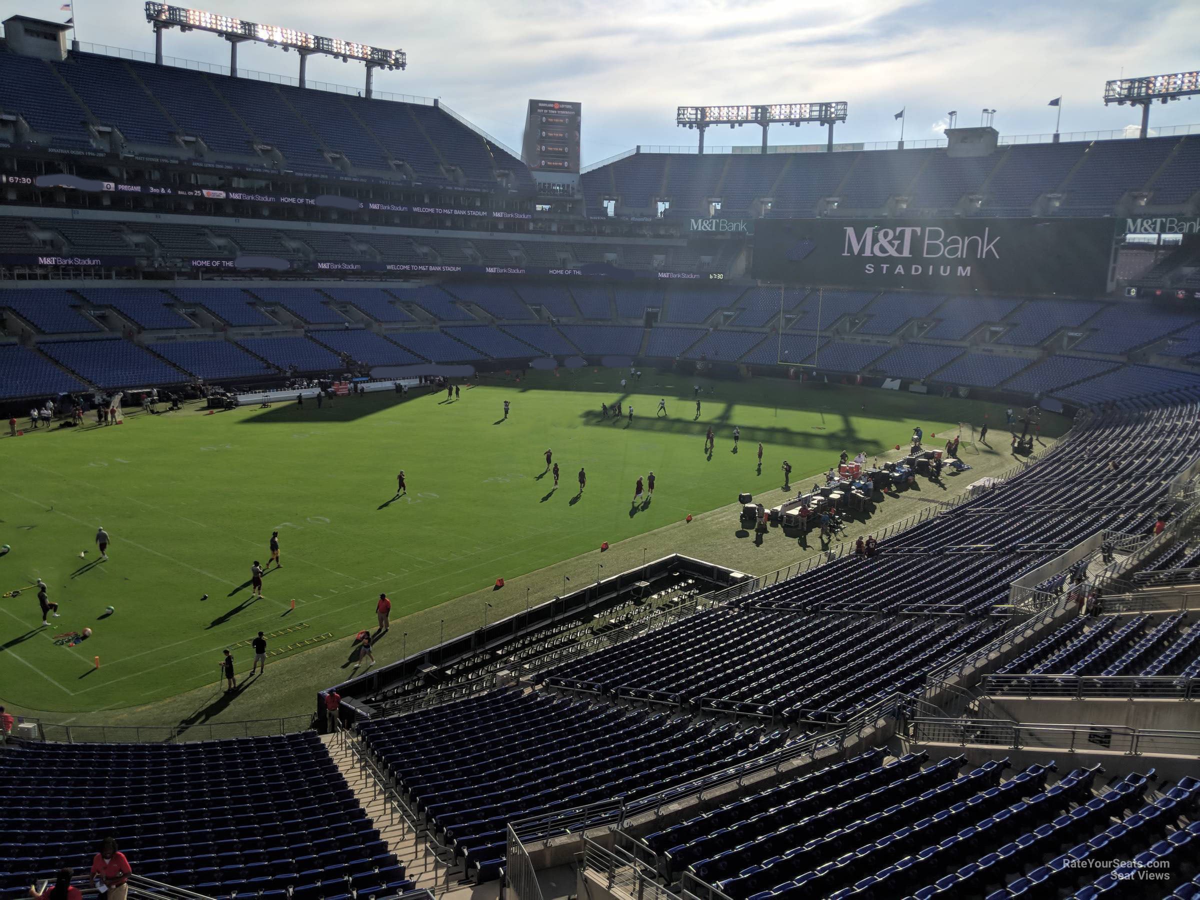 -The 200-level at M&T Bank Stadium - also known as the club level - features an impressive array of amenities and services. Club seat ticketholders will have access to the climate-controlled club concourse. There, fans will find: A number of lounges Eight full-service bars Multiple televisions to catch the action across the league Exclusive club-only food and drink menus Upscale restrooms All club seats are wider-than-normal seats and include extra legroom. Ravens Club Seats For Ravens games you'll have one of the best views at M&T Bank Stadium. The 200-level is perched just above the lower level and offers excellent sightlines without being too high up.