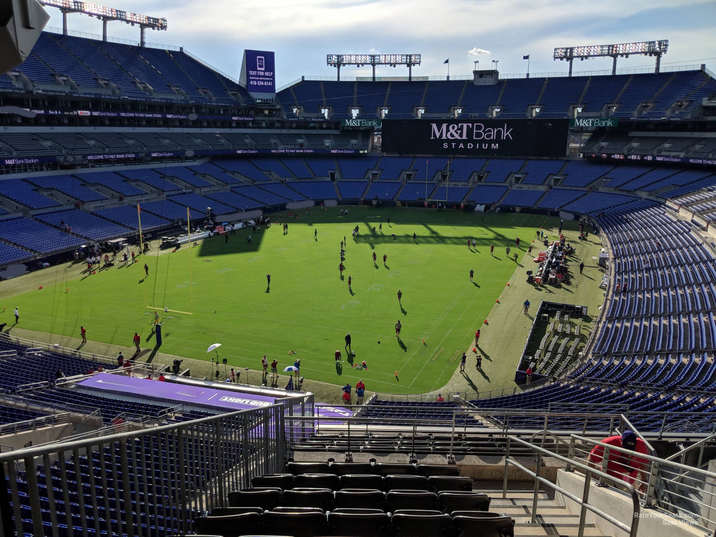 -The 200-level at M&T Bank Stadium - also known as the club level - features an impressive array of amenities and services. Club seat ticketholders will have access to the climate-controlled club concourse. There, fans will find: A number of lounges Eight full-service bars Multiple televisions to catch the action across the league Exclusive club-only food and drink menus Upscale restrooms All club seats are wider-than-normal seats and include extra legroom. Ravens Club Seats For Ravens games you'll have one of the best views at M&T Bank Stadium. The 200-level is perched just above the lower level and offers excellent sightlines without being too high up.