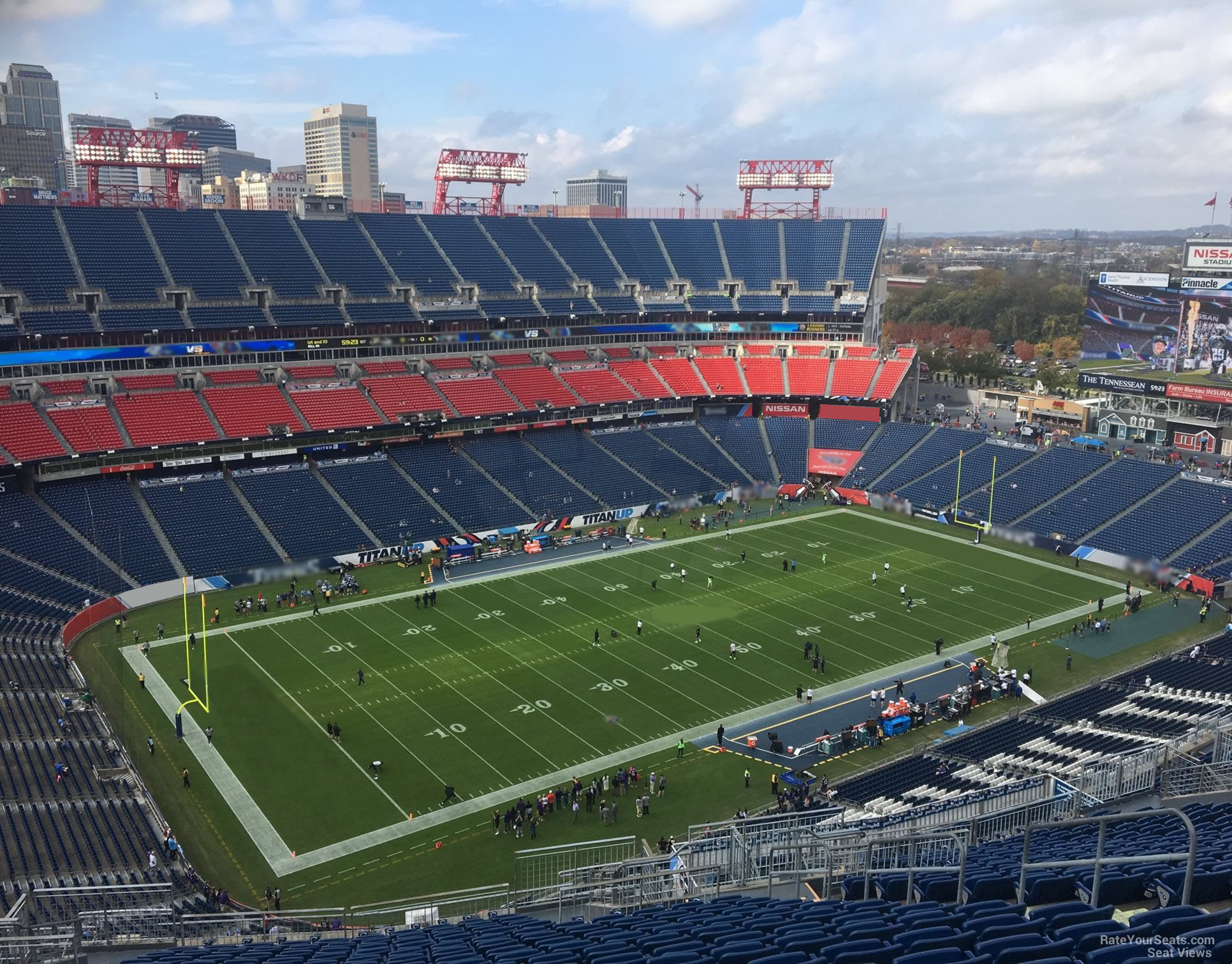 -With the furthest views of any area, the Upper Level Corner sections are the best place to find cheap tickets at Nissan Stadium. Sections in the east corner (316-321) will see the most sun during day games, while sections 339-344 will get the sun at their back earlier than any other corner seating option. Loge seating is located at the front of the sections in Rows A-G, while the Upper seating is located just above the entry tunnel in Rows G-KK.