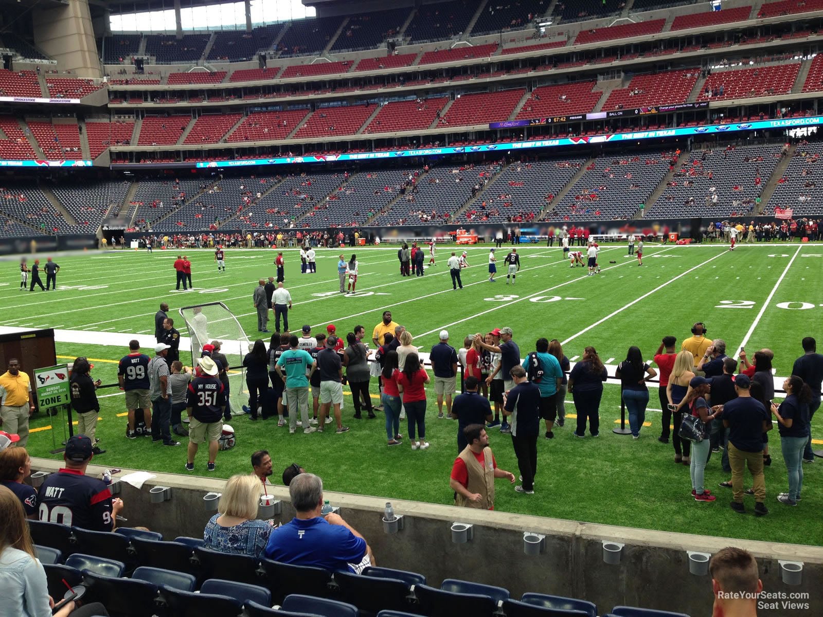 -The Field Level at NRG Stadium is all 100-Level sections. Tickets on this level are great for any event and bring fans close to the action or show on the field. Most sections contain 36 rows and are lettered from row A (closest to the field) to row Z, then followed by double-lettered rows AA to JJ (furthest from the field of play). Entry tunnels are located at the top of each section, leaving the longest walks to fans closest to the bottom of the section. For Football Games Sections 105-108 are located behind the home team bench Choose rows Q or higher to see over the players on the sideline For the Rodeo The 100-level will extend by eight rows during the Rodeo. These extended sections are called action seats and bring fans even closer.