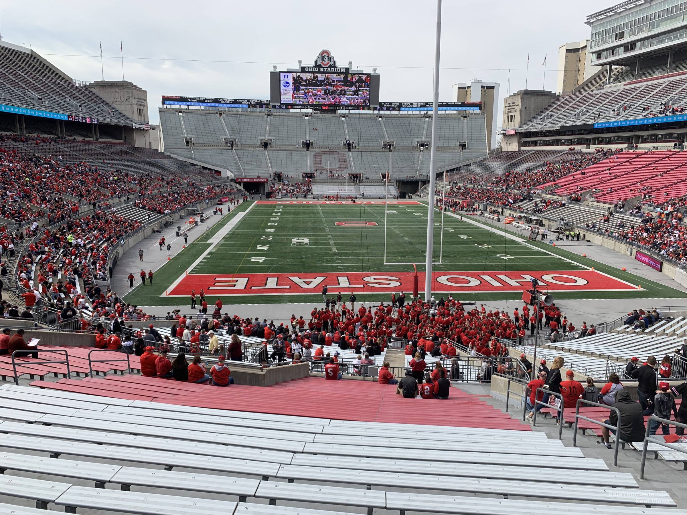 -A Deck Seating at Ohio Stadium refers to lower-level sections that form the core of the stadium's horseshoe shape. Sections are numbered 1A-30A with even numbers on the east side and odd on the west. A Deck Information Most A Deck sections start just 12 rows from the field - directly behind AA Deck Seats. They are also preferred over AA Deck sections because their sitelines aren't blocked by players and personnel on the sideline. These sections have up to 37 rows of bleacher seats. The first row - usually labeled 1 - is also where the section tunnel is located. Sitting close to the first row will mean fewer stairs - but you'll also be more distracted by foot traffic. There are no A Deck sections directly behind the Ohio State bench; this space is made up of Club Seats. But to be on the OSU sideline, choose an odd-numbered section (e.g.: 17A). Not only will you be close to the Buckeyes, but you'll also be on the less sunny side of the field. Overall, these are some of the best and closest seats for Ohio State football.