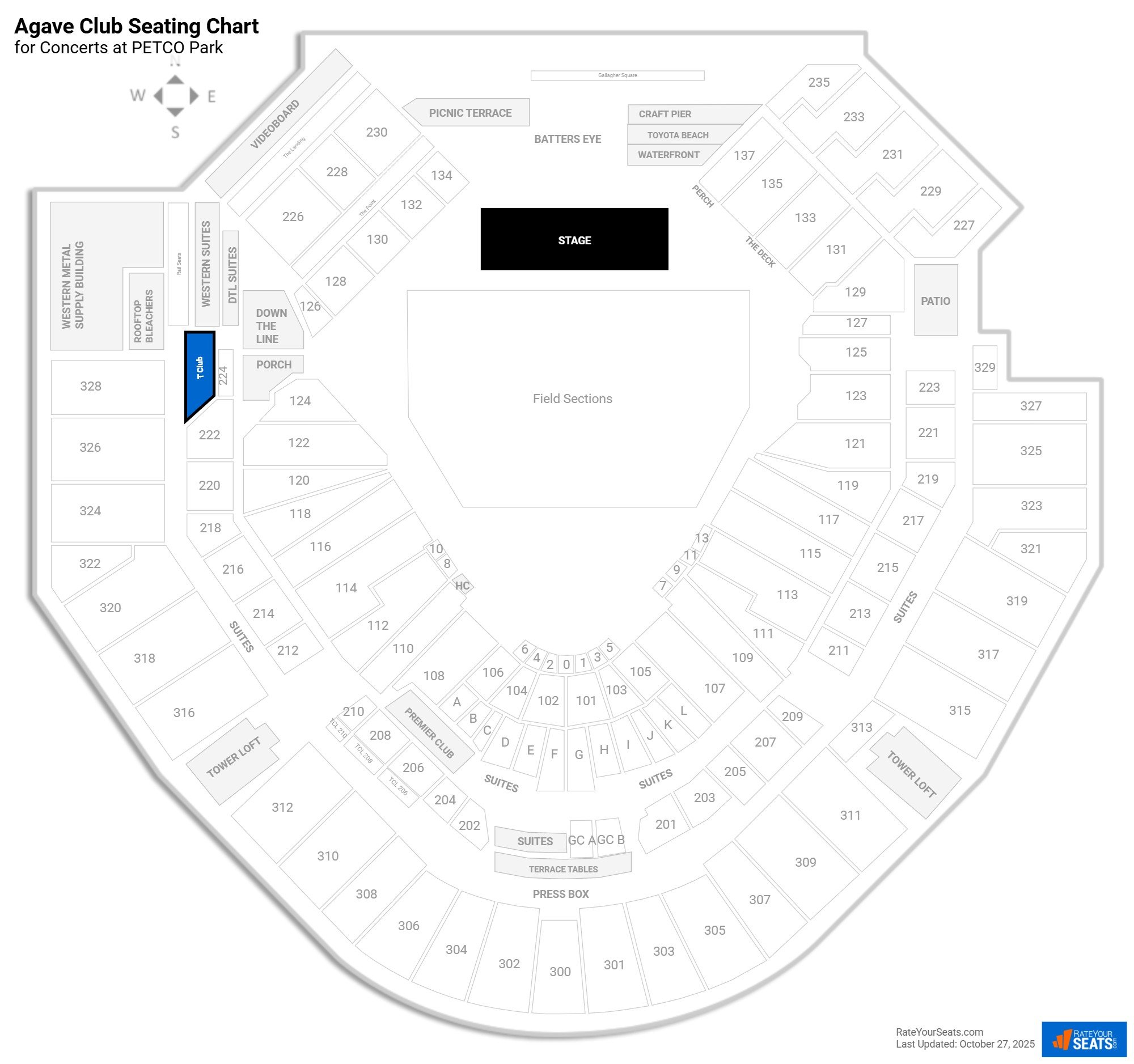 The Agave Club is a new premium space at PETCO Park that opened for the 2024 season. The seats and club lounge are located at the end of the Terrace Level on the third base side.