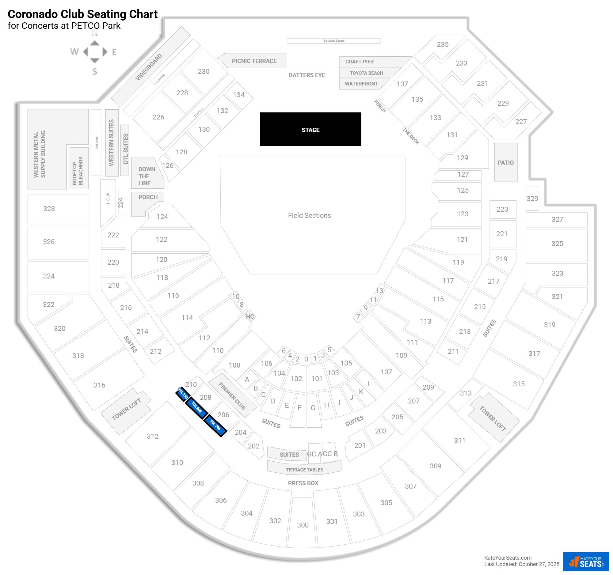 The Coronado Club at Petco Park is a premium seating option located on the Terrace Level (200 Level) between 3rd base and home plate, offering fans outstanding views and top-notch amenities.
